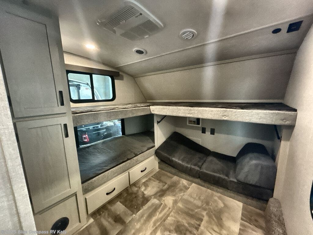 A front bunkhouse model with a private full bath, how nice! The children will love bringing along their friends with this spacious Chaparral fifth wheel. It even has a loft for added space or storage. The front bunk room features a cube sofa with a 30" x 62" bunk overhead, and 30" x 74" bunks off to the side. The full bath is located within the bunkhouse space and features a tub/shower, toilet and sink. There is also wardrobe space for clothing. Down on the main level, the combined kitchen and living area features one large slide including a theater seat and free spanning table for four. A nice center island features a sink so you can visit while prepping dinner or doing the dishes. There is also a tri-fold sofa in this space for seating and added sleeping. The rear features a master bedroom and second full bath including a king bed slide out! The full rear bath includes a vanity with two sinks, a toilet and a large shower with seat. The loft is above the rear master bedroom area and could sleep one more, or be used for added storage!