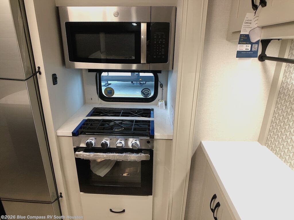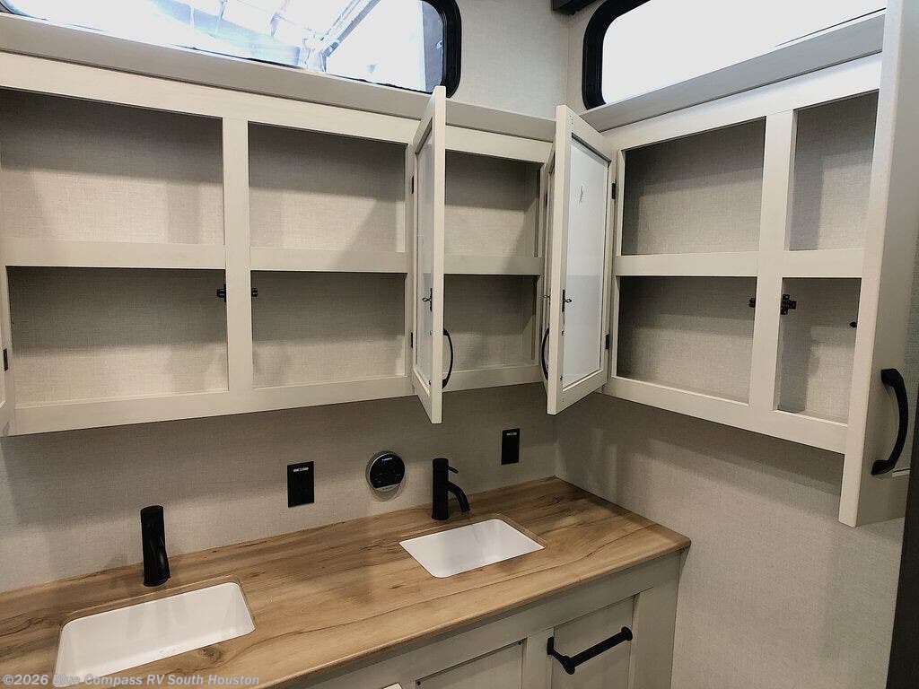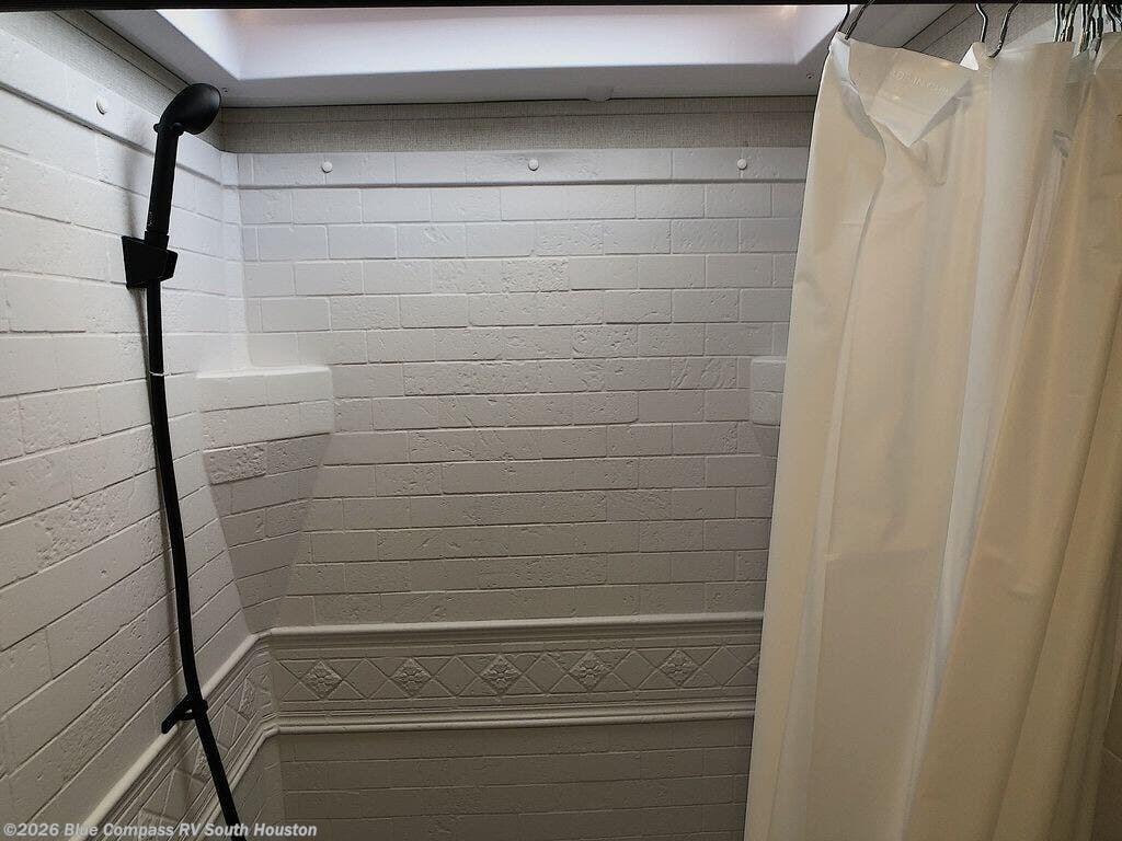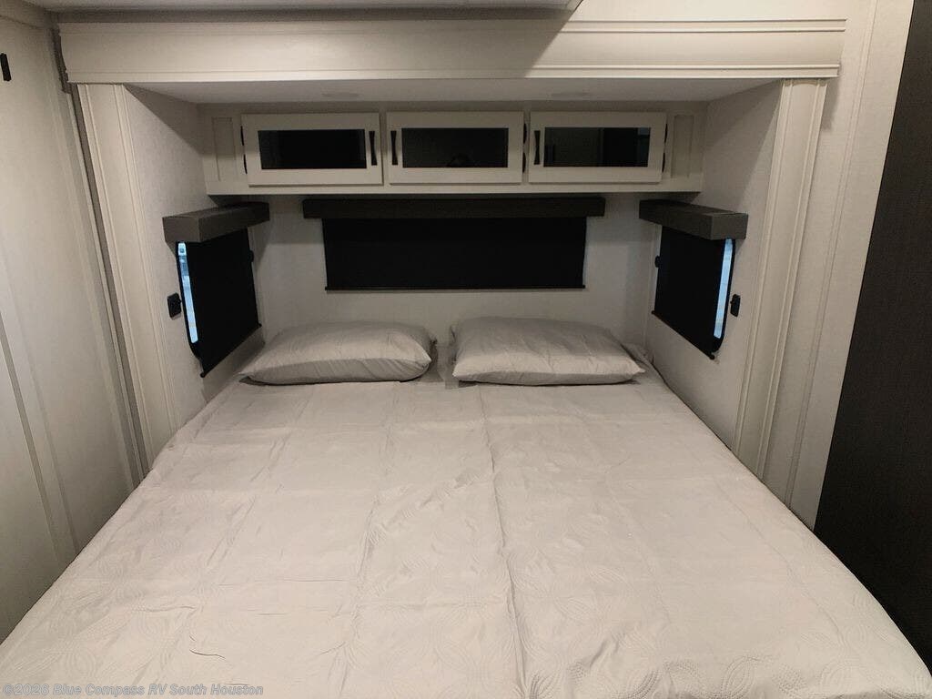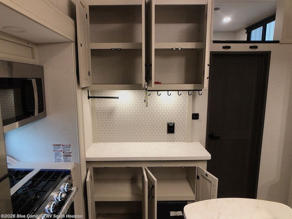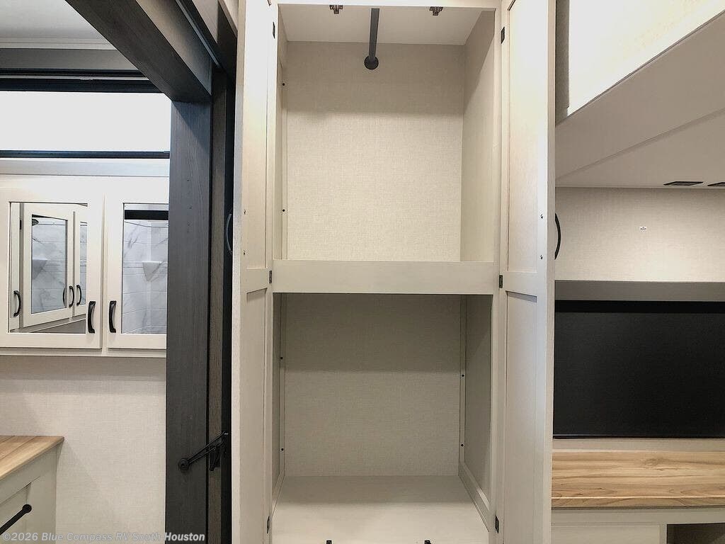 One look at this fifth wheel and you'll be sold! There are an impressive two master suites; one up front with a queen bed and full bath, and one towards the back with a king bed slide and second full bath! There are even dual bath sinks in the rear bath for added convenience! The middle living area includes dual opposing slides, a tri-fold sofa, plus theater seating and a free-spanning table for ample seating, dining, and sleeping space. There is also an entertainment center with a 50" 4K Smart LED TV to wash away those rainy day blues. The chef of your crew will have a GE Profile 21" stainless steel oven with a residential cooktop and a GE Profile stainless residential microwave to cook meals each day, a kitchen island for more counter space, and a 16 cu. ft. side-by-side 12V refrigerator for food storage.