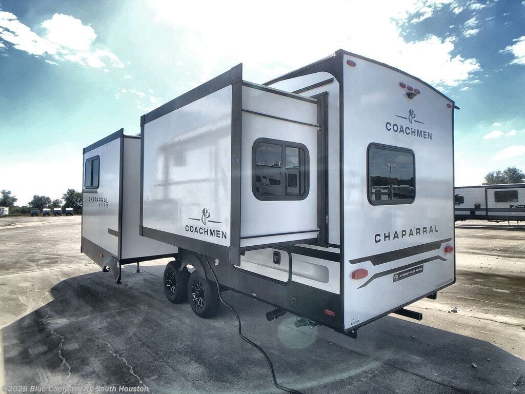 Comfort, convenience, and an easy haul is what you will find with each one of these Coachmen RV Chaparral Lite fifth wheels! Their Tri-Tex powder coated frame technology is up to 5X more weather resistant, and the dual-sided Azdel composite sidewall panels are ultra durable. The Equa-Flex suspension provides hassle-free towing, and you might want to add the exterior back-up and sideview camera prep for easy parking. You will feel right at home inside with slow rise blackout roller night shades, an upgraded Carbon and Walnut entertainment center, a modern high-rise kitchen faucet, and many more comforts! The exterior is just as inviting with its electric awning with LED lights, MORryde StepAbove entry steps, and pass-through storage for all your gear!