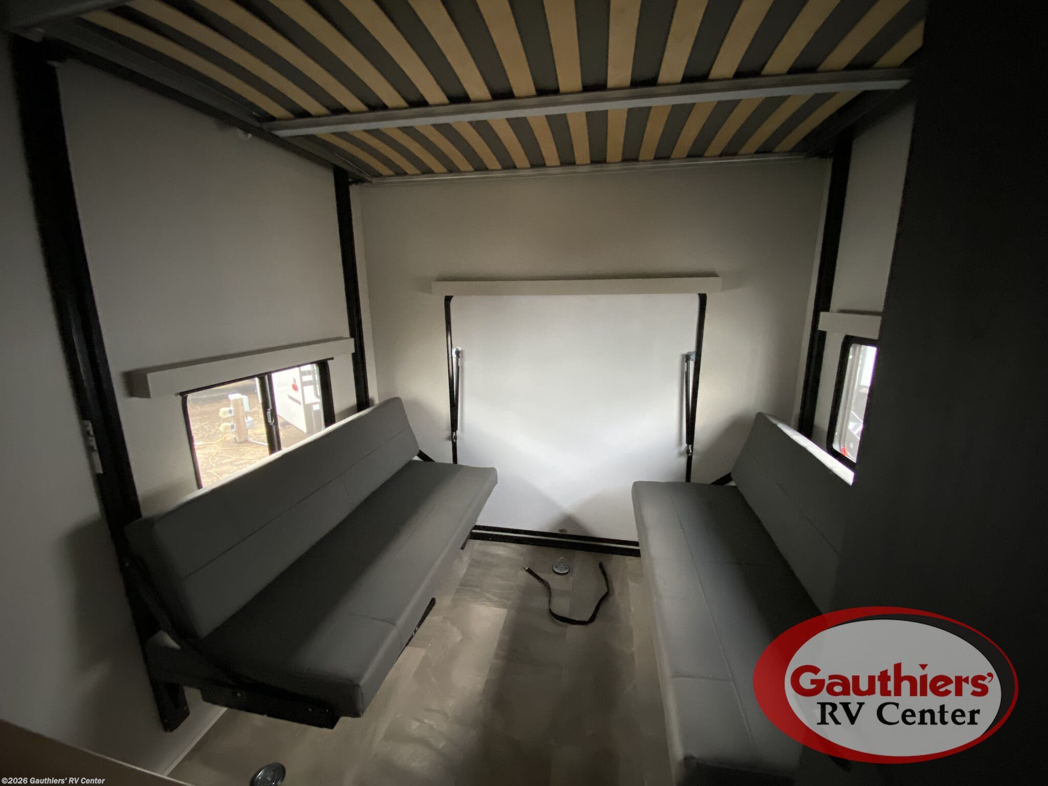 The 30BH bunkhouse floorplan emphasizes practical family living: bunk beds for kids or guests, a private front bedroom, a mid kitchen for efficient meal prep, and a U-shaped dinette that converts for additional sleeping or dining space. The overall design supports easy navigation and sociable gatherings, whether you’re parked at a campground or on the road.