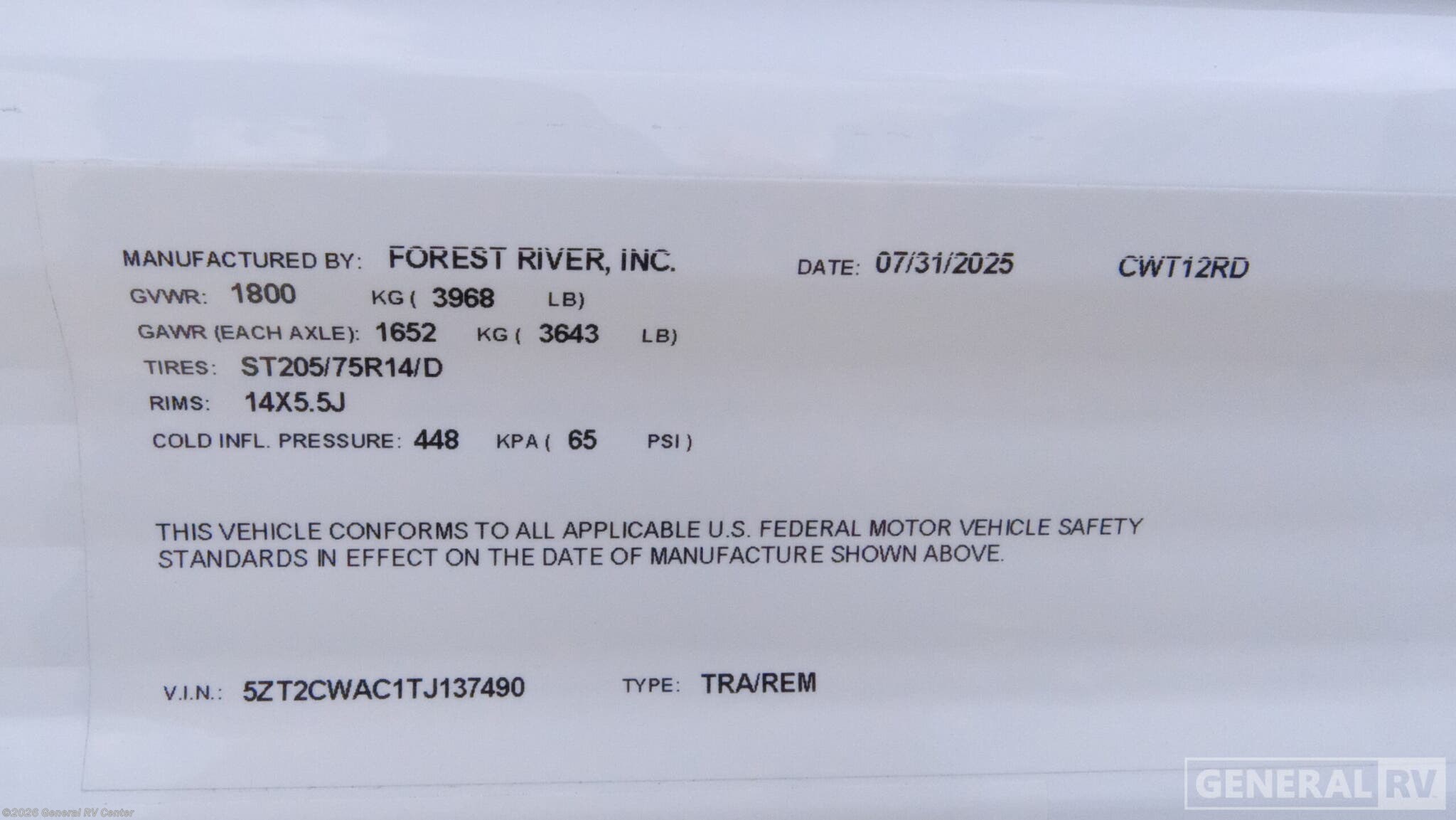 - VIN5ZT2CWAC1TJ137490