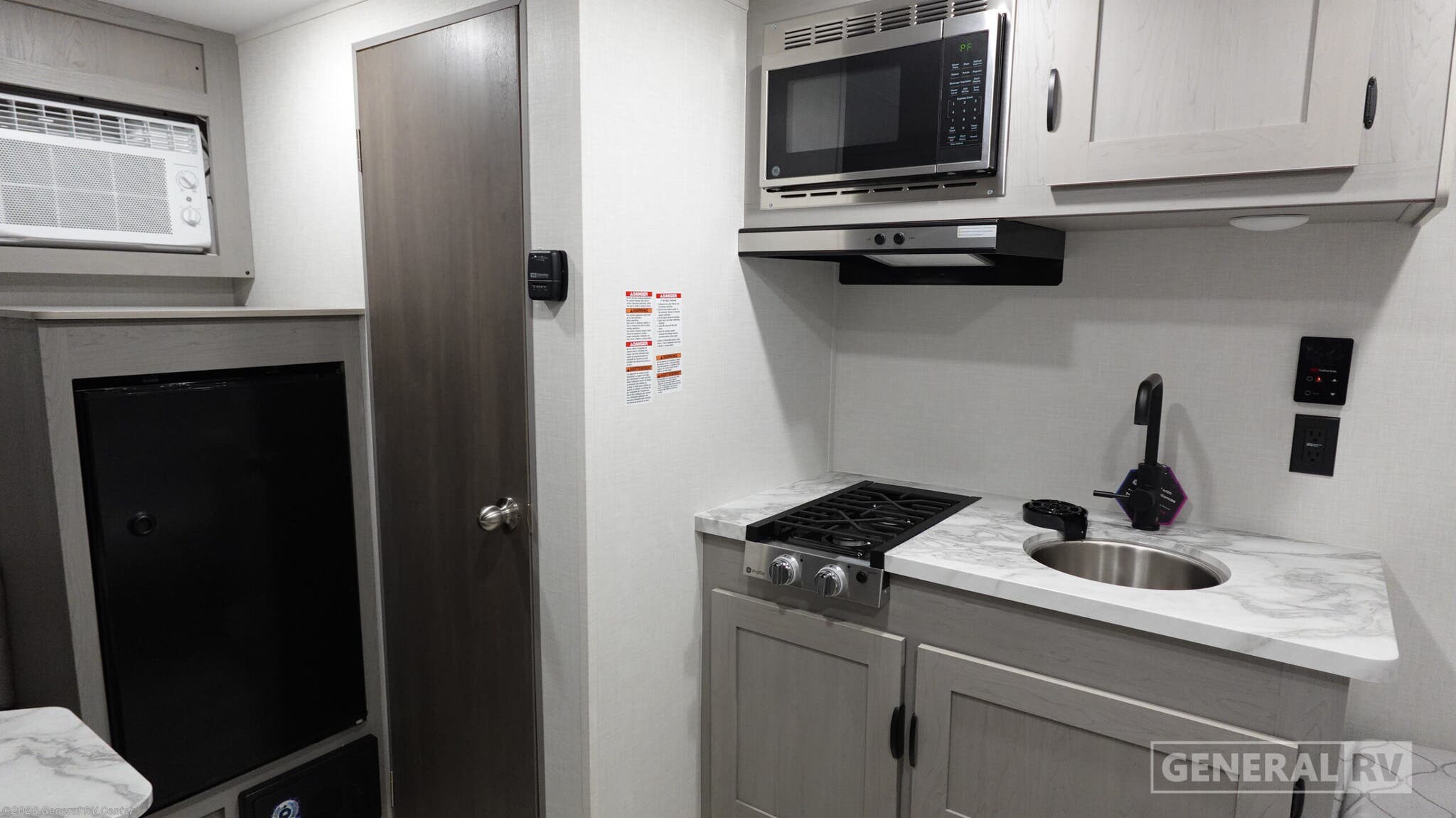 Coachmen Clipper 3K Series travel trailer 12RD highlights: 54" x 74" RV Queen Bed Two-Burner Cooktop Private Bath Sleeps Three Lightweight camping with at-home comforts is possible with this travel trailer in tow! Once you arrive at the campground, you can unload the exterior storage, put out the awning, then head inside to make lunch on the two-burner cooktop. There is a refrigerator to keep your items fresh, plus a sink with a cup rinse for added convenience. The booth dinette provides a place to dine together, play a board game in the evenings, and let a guest or two little ones sleep on. You'll have the front 54" x 74" RV queen bed to yourselves, along with an overhead shelf and bedroom storage for your things. And don't overlook the private bath with a toilet and 24" x 32" shower! The Coachmen Clipper 3K Series travel trailers are for the newbie or seasoned RV user. Each model is built on a BAL NXG frame with supreme powder coating and HUCK bolt assembly for strength you can count on. Towing and setup are made easier with electric brakes, Easy Lube axles, and a power awning with LED strip and adjustable legs at the campsite. The Clipper 3K Series travel trailers include a cable TV hook-up, USB charging ports, and a friction-hinge entry door that makes it easier to come and go, plus back-up camera prep and solar prep to help you stay confident and connected wherever you roam.