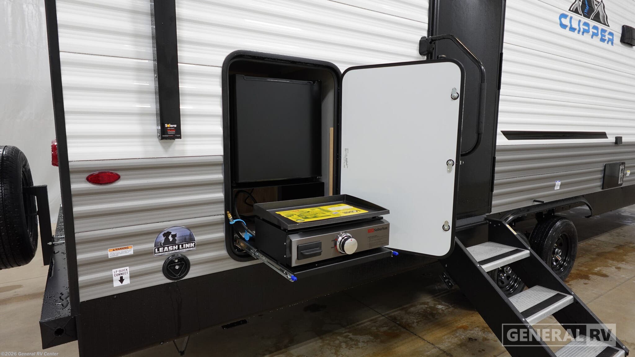 **Coachmen RV Clipper 6K Series travel trailer 25RB highlights:** * Large Slide Out * 21' Power Awning * Walk-In Pantry * Full Rear Bath * Outside Kitchen with Small Refrigerator Pack your bags and head to the campground in this spacious travel trailer! The owners will love having their own space in the front private bedroom, complete with an RV queen bed plus dual wardrobes and shelves. If you have any guests staying over, they can sleep on the sofa and u-shaped dinette within the large slide out, and an optional fireplace can be added to this space to make it feel a little more like home. A full kitchen will let you make meals each day, and the outside camp kitchen with a small refrigerator will be perfect for lunch outside. The spacious full rear bath features a large bath countertop, a shower with a glass door, and a linen cabinet to name a few conveniences. With any Coachmen Clipper 6K Series travel trailer, you can experience affordable camping with your family with the same comforts and quality as the bigger trailers. Each is built on a BAL NXG frame, and includes a seamless one-piece TPO roof membrane, easy lube axle(s), and HUCK bolt assembly construction. The interior offers a kitchen sink drying rack, a 12V refrigerator, and a foot flush toilet, plus more. You will also appreciate the tankless on demand water heater plus the 13.5k BTU A/C and 30k BTU furnace to ensure your comfort!