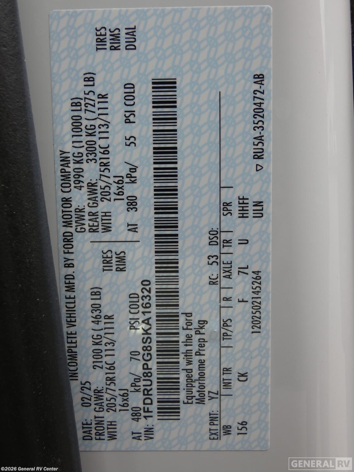 - VIN1FDRU8PG8SKA16320