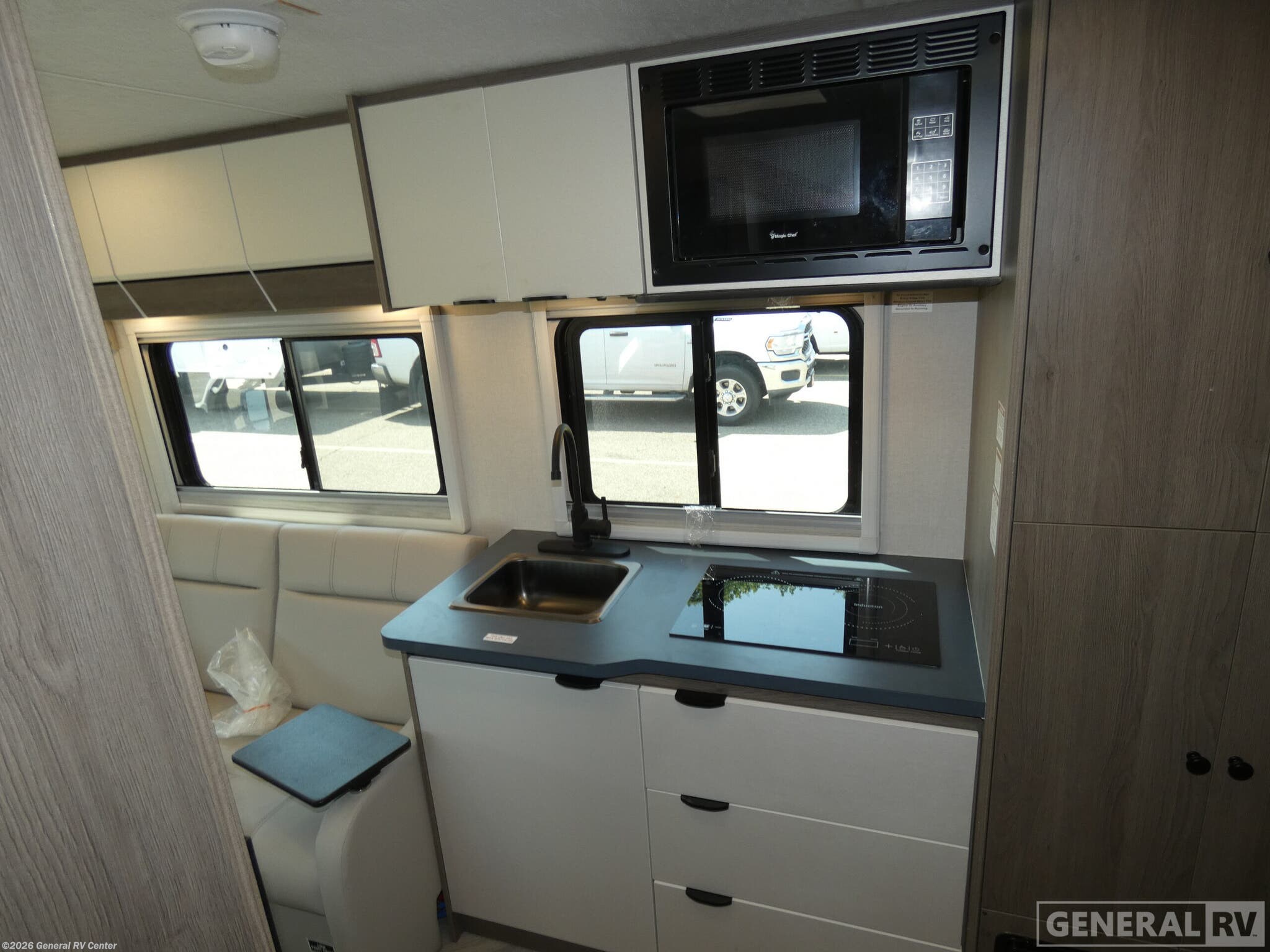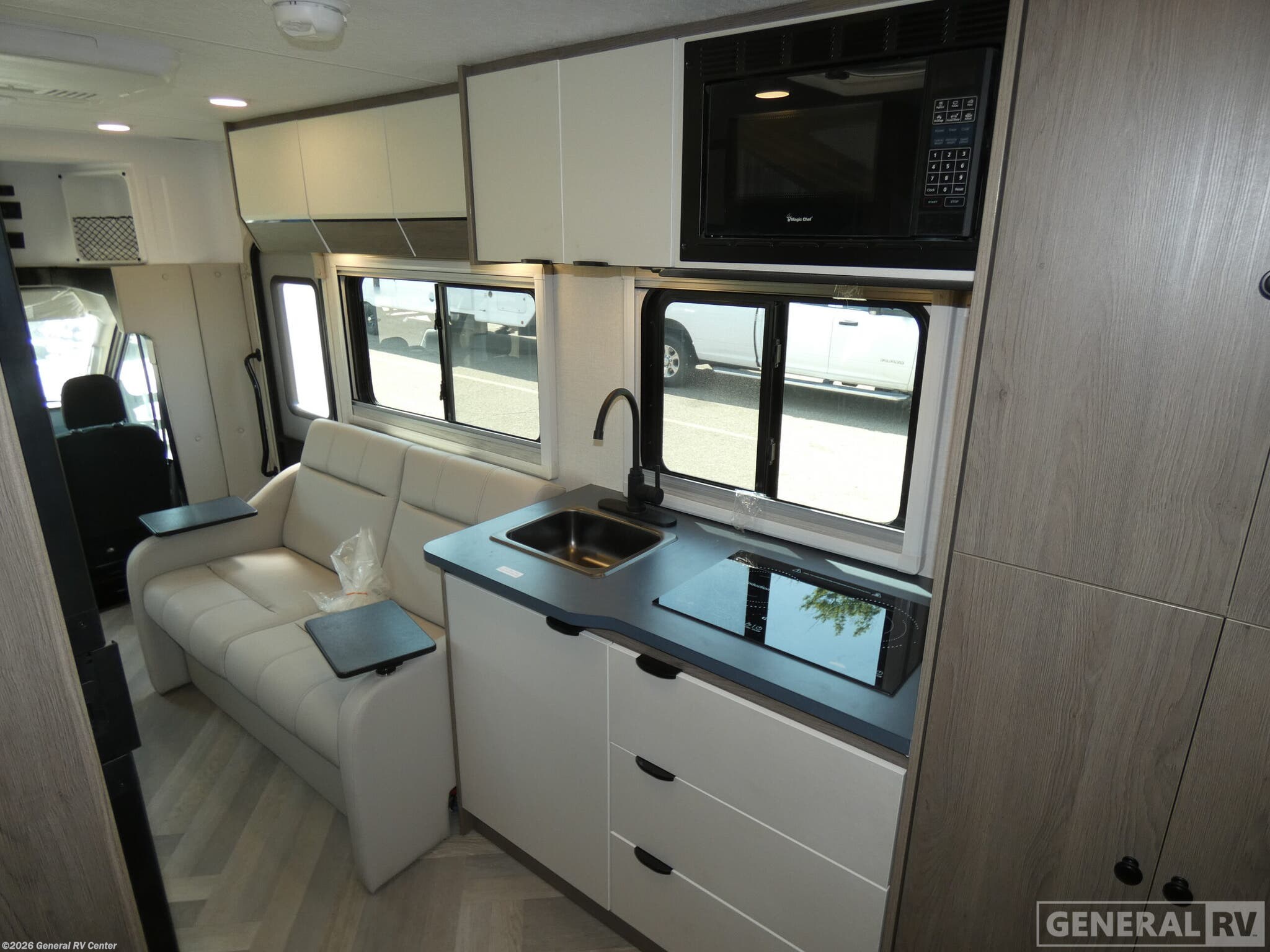 Experience the ultimate in compact luxury with the 2026 Coachmen Cross Trail EV 20XG. This RV is designed for those who crave adventure without sacrificing comfort. At just over 24 feet, it offers a cozy yet spacious interior perfect for a small family or couple. The front living area features a convertible dinette, seamlessly transforming into an additional sleeping space. The center kitchen is equipped with a two-burner induction cooktop and a compact electric refrigerator, making meal prep a breeze while you’re on the road. The thoughtfully designed layout includes a comfortable double bed, ensuring restful nights after days filled with exploration. The center bath provides convenience with a practical shower setup, while the powered retractable awning extends your living space outdoors, perfect for enjoying the scenery. Built on a robust Ford Transit chassis and powered by a V6 EcoBoost engine, this RV promises a smooth, powerful ride. For more details or to experience it in person, visit your nearest General RV dealership.