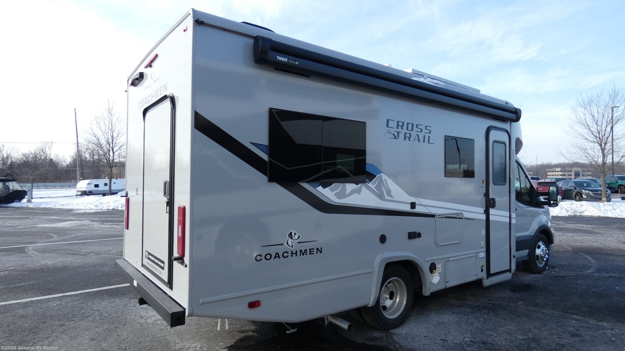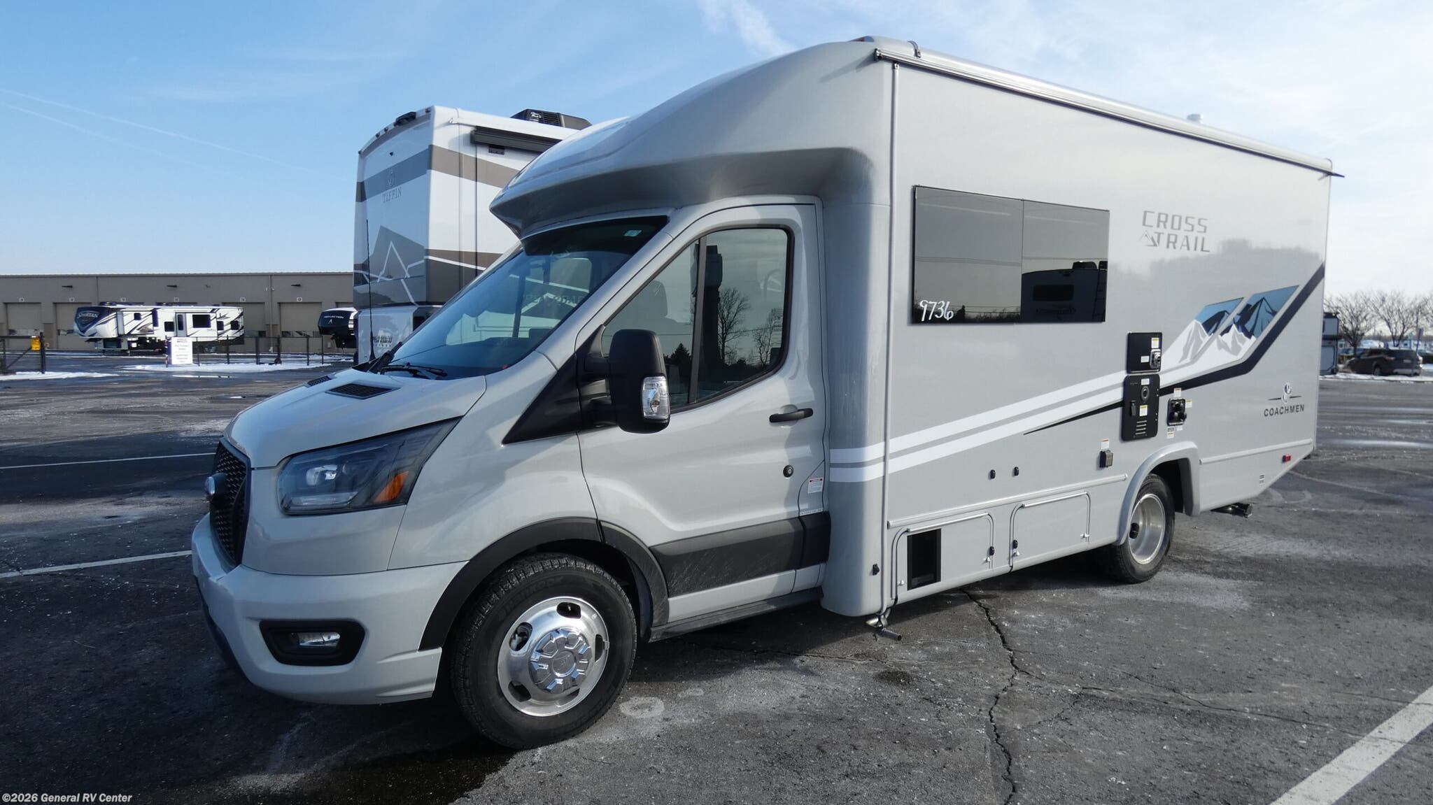 Discover the 2026 Coachmen Cross Trail EV 21XG, a modern marvel designed for the adventurous spirit. Built on a robust Ford Transit chassis with a 3.5L Ecoboost engine, this RV combines power with efficiency, making it perfect for those long road trips. Its compact length of 24 feet ensures easy maneuverability, while the thoughtfully designed interior maximizes comfort and functionality. The Murphy double bed offers a cozy sleeping space, and the J-lounge provides a perfect spot to relax and enjoy the view through the large windows. Inside, you'll find an efficient kitchen equipped with an induction cooktop and a microwave, ensuring you can whip up your favorite meals on the go. The spacious shower and ample storage, including overhead cabinets and a pantry, make this RV feel like a home away from home. With a fresh water capacity of 29 gallons and a gray water capacity of 59 gallons, you’ll have plenty of resources for your travels. The Cross Trail EV is your ticket to exploring the open road with style and ease. If you've chosen the CrossTrail EV Xtreme Package, you'll be ready to conquer the road with even more features: -Van Compass 2" Suspension Lift -Falcon Racing Shocks -All Terrain Tires -Black Out Aluminum Rims -Front Bumper Brush Guard w/LED Lights -Rigid Running Boards -XTREME Graphics Package For more details, visit your nearest General RV dealership.