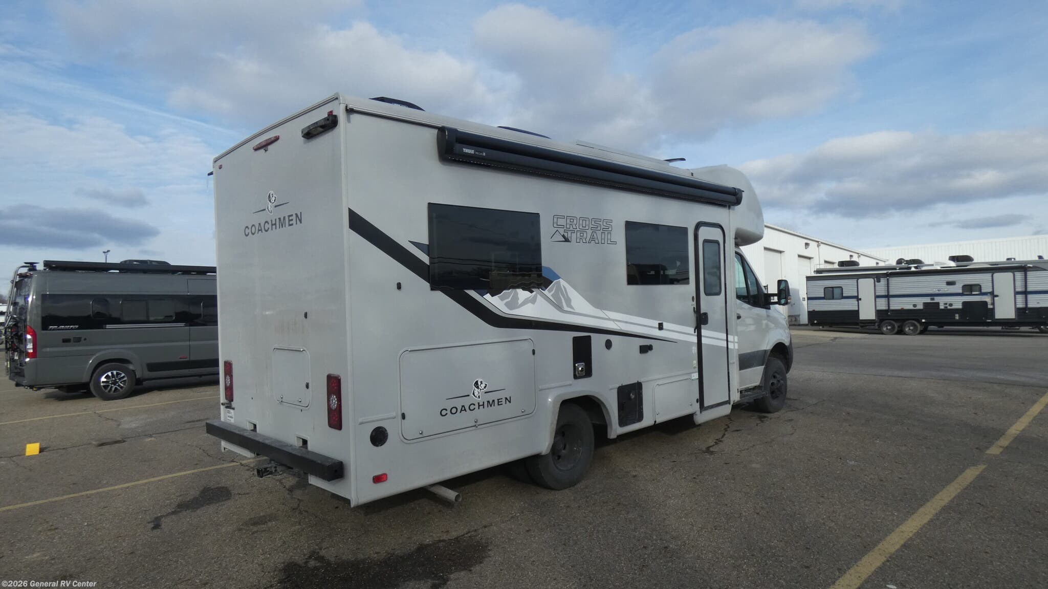 **Coachmen RV Cross Trail EV Class C diesel motorhome 24FL highlights:** * Bunk Over Cab * Full Bed * 24x32 Shower * Solar Prep Pack your bags and gas up this motorhome for an adventure of a lifetime with your spouse! You will get a good night's rest on the corner 52" x 80" full bed, and you can even bring a couple extra guests to sleep on the 36" x 76" bunk over cab. Keep everyone's bellies filled with delicious home cooked meals prepared on the two burner cooktop, convection microwave, 6.2 cu. ft. refrigerator, and countertop extension. Clean up after a fun day of adventures in the rear corner bathroom with the shower and store your toiletries in the medicine cabinet. When you're ready to wind down for the night, enjoy a game or two of cards underneath the power awning! Each one of these eco-friendly Coachmen RV Cross Trail Class C diesel motorhomes are ready for an adventure when you are! They are built on a Mercedes-Benz AWD Sprinter chassis and 4 – cylinder diesel high output engine. Spacious storage lets you bring all your most important gear. Come see all the other features these units have to offer!