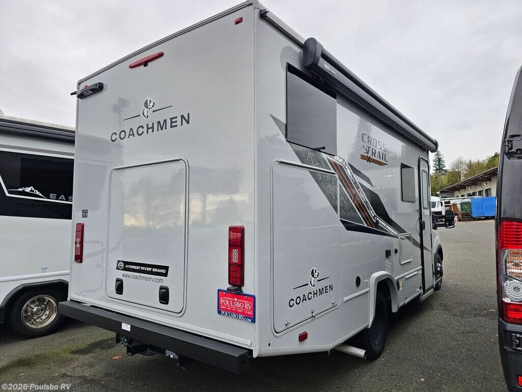 The 2026 Coachmen Cross Trail EV 20XG is a new gas-powered RV designed to deliver comfort and versatility for those who love exploring the open road. Measuring over 24 feet in length, this model offers a spacious living area that adapts easily to your travel needs. Ideal for families or groups needing accommodations for up to seven people, it features multiple sleeping options that make rest simple after a day of adventure. Without slide outs, this model maintains a compact footprint that is easier to maneuver and tow, supported by a towing capacity of 4000 pounds which provides added convenience on your journeys. The Coachmen Cross Trail EV 20XG includes one awning to enhance outdoor relaxation while protecting you from sun or light rain. Inside, the arrangement prioritizes comfort and functionality, creating a welcoming space for meals, entertainment, and downtime. Outdoor enthusiasts will appreciate the RV's practical leveling jacks, which provide stability wherever you choose to camp, ensuring a secure setup with minimal effort. Designed without a bunkhouse, this RV maximizes the interior space for versatile use, offering a flexible layout that suits different travel styles and needs. Experience the ease of travel with this new Cross Trail EV, perfectly suited for creating lasting memories on the road without sacrificing the conveniences of home. Whether you are embarking on a weekend getaway or a longer expedition, this model provides a reliable and enjoyable base camp. As a family-owned, award-winning local RV dealer with multiple locations in Sumner, Everett, Kent, and Mt. Vernon Washington, Poulsbo RV here to help you find the perfect RV. Stock#: E5988, VIN: 1FDRU8PG7SKA54590.