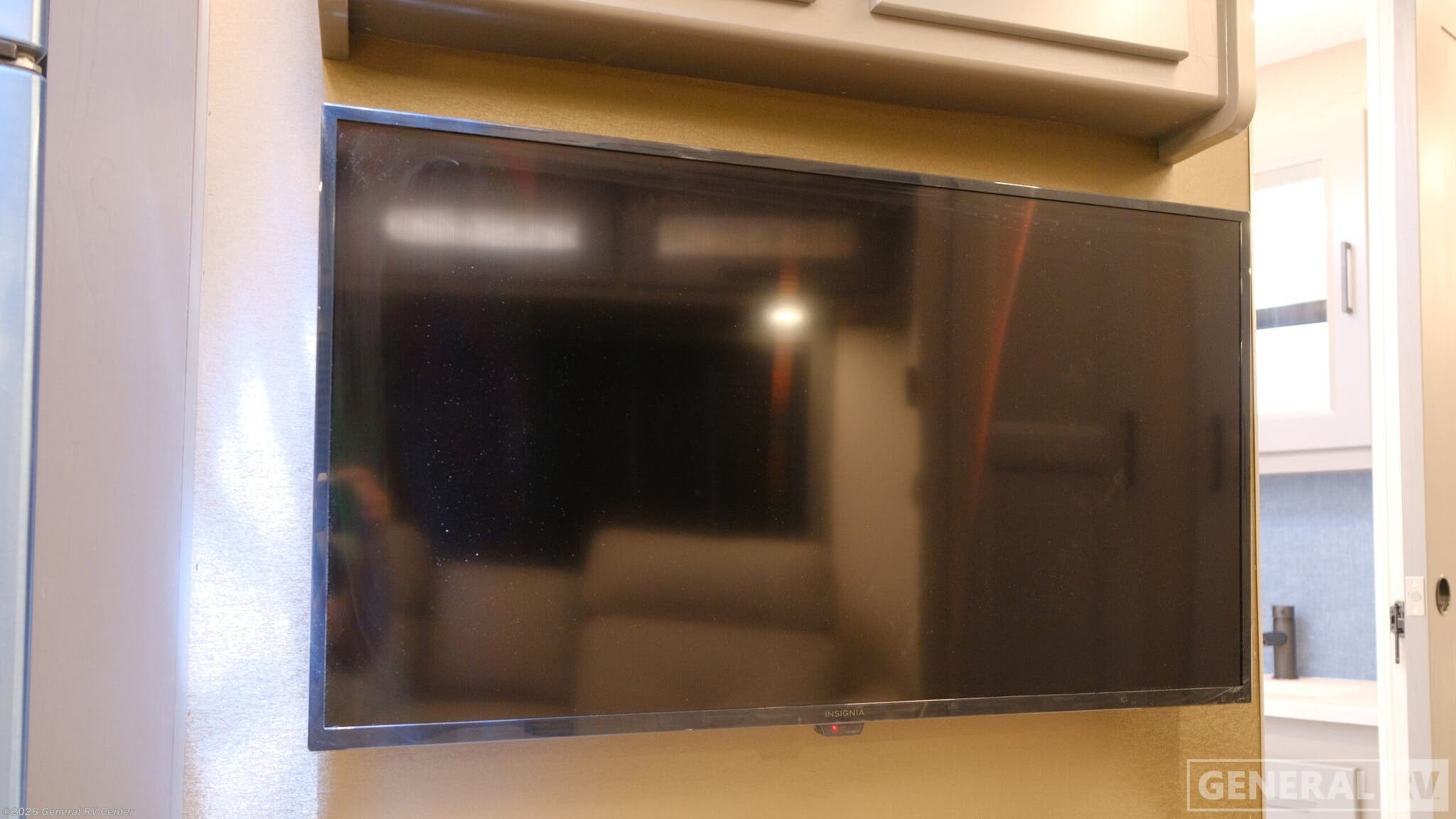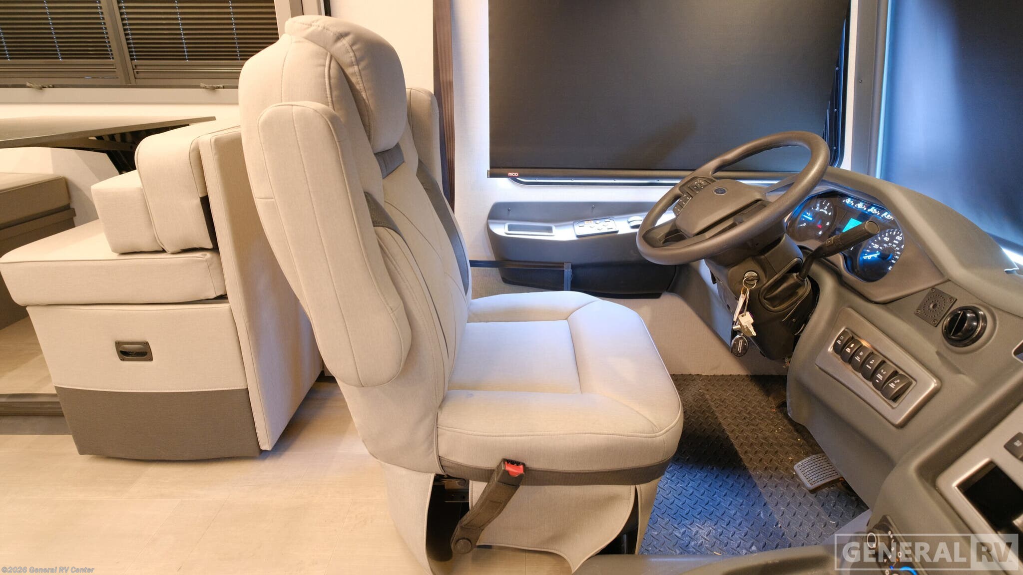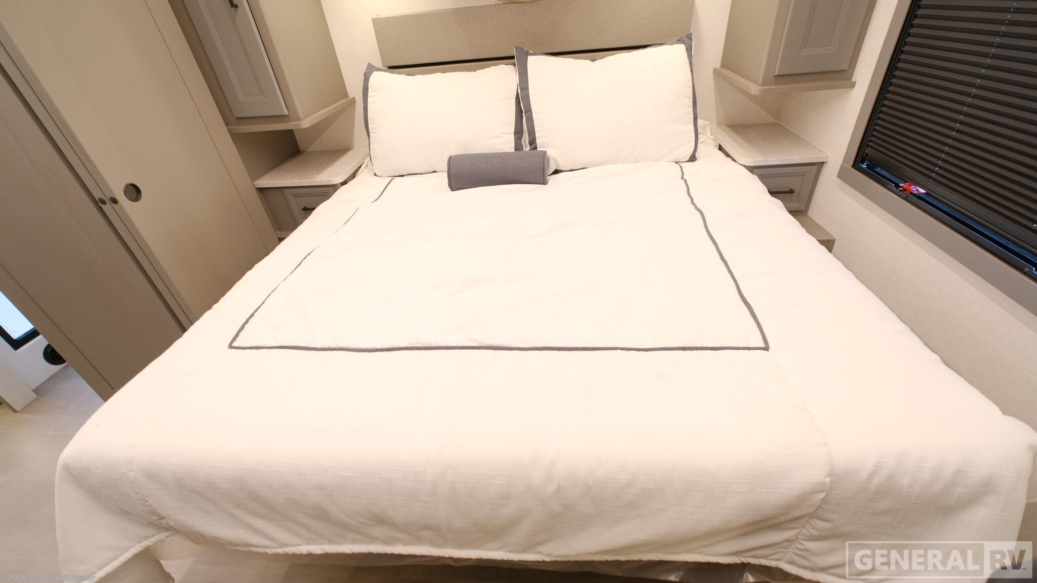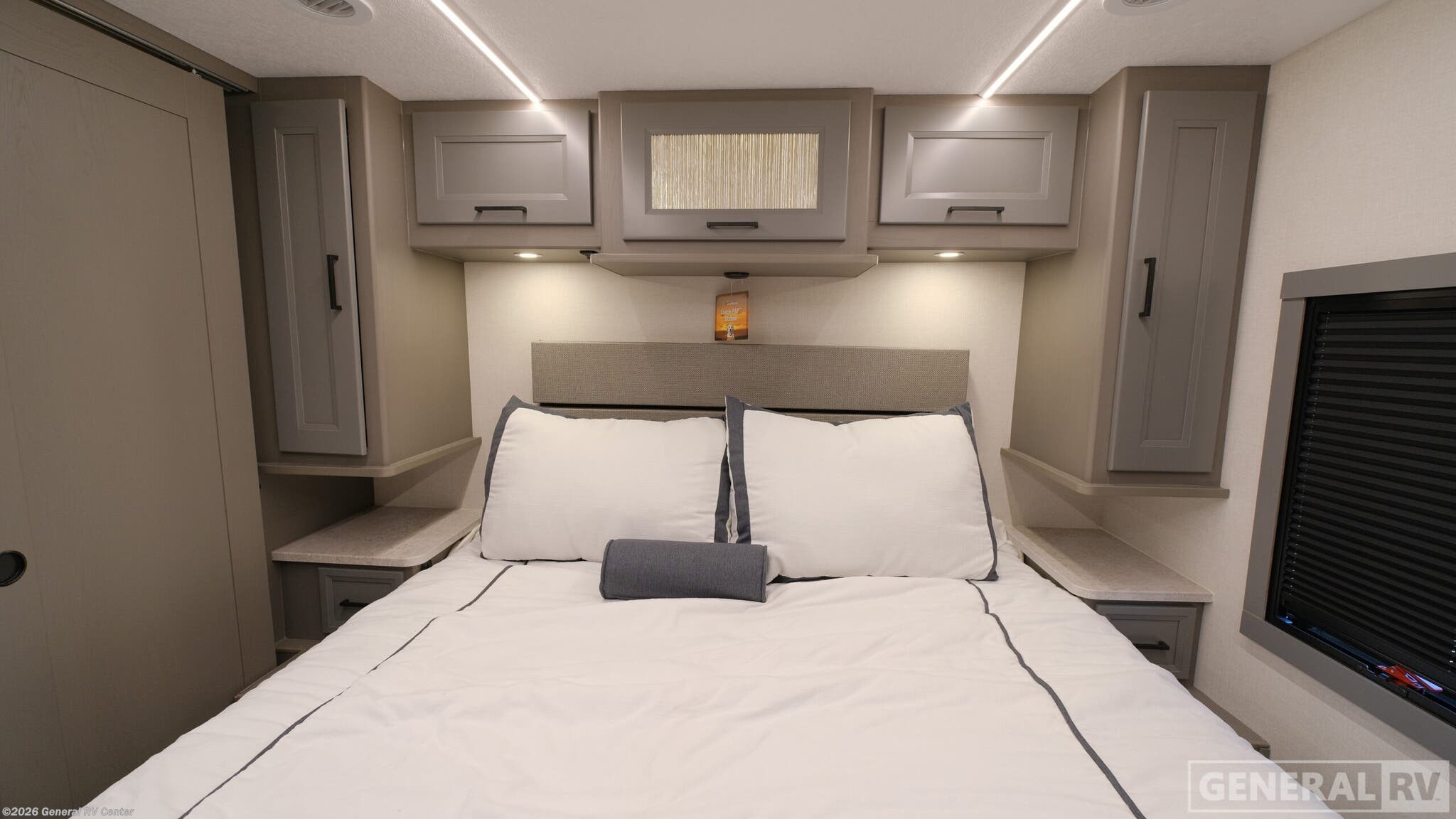 The 2026 Coachmen Encore 335FS is a Class A gas motorhome that blends residential comfort with dependable road performance, making it a top pick for travelers seeking long-term luxury on the go. Built on the reliable Ford F-53 chassis and powered by a 7.3L V8 engine, the 335FS stretches 35 feet 4 inches in length and offers a strong, stable drive with a 22,000-pound GVWR and an 80-gallon fuel tank. Its sleek exterior is enhanced by high-gloss gelcoat sidewalls, dual power awnings (10' and 15'), and an outdoor entertainment center with an LED TV and kitchen setup—perfect for outdoor living. Inside, the Encore 335FS offers a thoughtfully laid-out floorplan with stylish maple cabinetry, LED lighting, and residential vinyl flooring throughout. The front living area includes theater seating, a dinette, and a 40-inch TV with a built-in electric fireplace—ideal for relaxing evenings. The kitchen is fully equipped with a stainless-steel residential refrigerator, solid-surface countertops, a three-burner cooktop with oven, microwave, and plenty of storage, making meal prep easy and enjoyable. The private rear bedroom features a king-size bed, wardrobe storage, overhead cabinets, and a dedicated TV. It also includes prep space for a stackable washer and dryer, offering convenience for extended trips. The bathroom features a porcelain toilet, radius shower, skylight, and linen storage. Driver comfort is also a priority, with swivel captain’s chairs, a 10" touchscreen with Apple CarPlay and Android Auto, and a tilt/telescoping steering wheel. For added safety and functionality, the coach includes side and rearview cameras, automatic leveling jacks, a 5.5kW generator, 50-amp service, and Azdel composite construction for durability and moisture resistance. With its high-end features and road-ready build, the 2026 Encore 335FS is built for travelers who want it all.