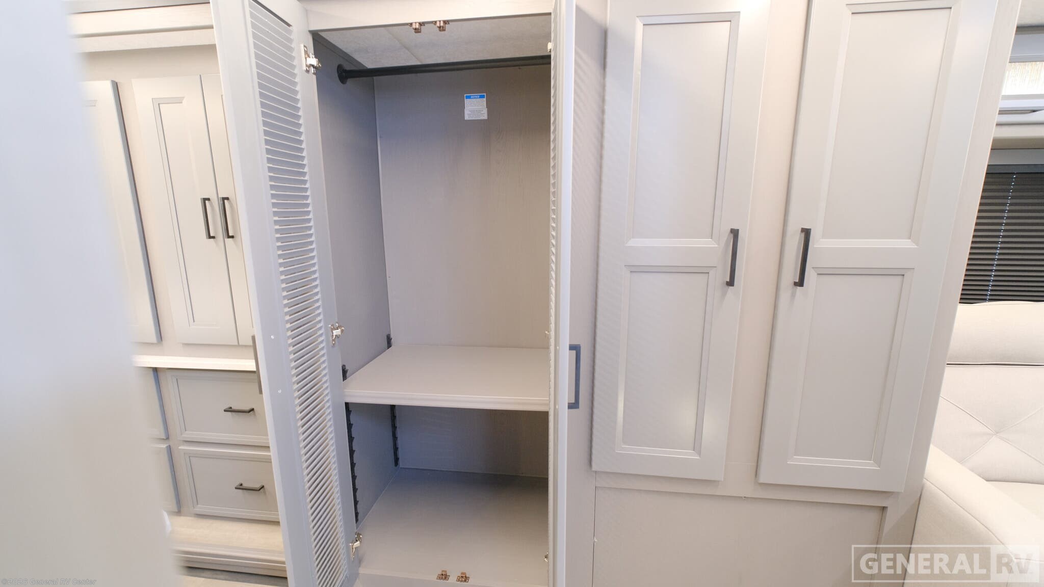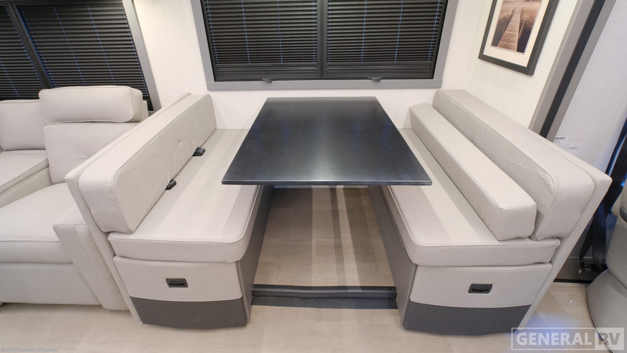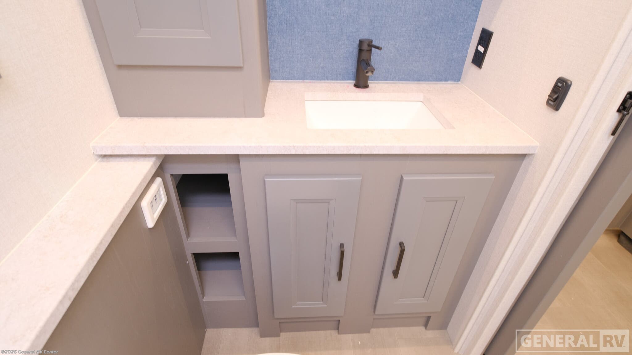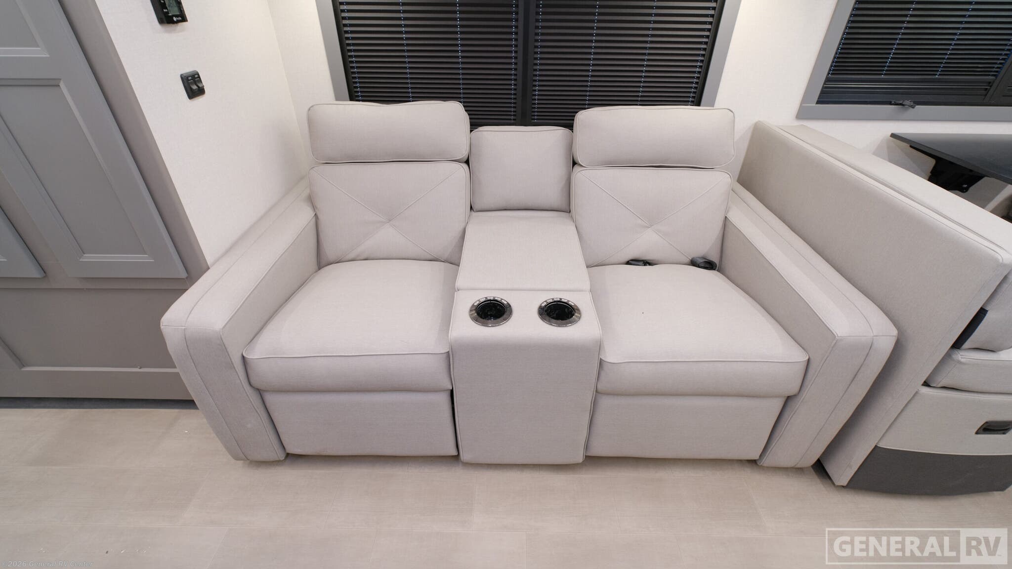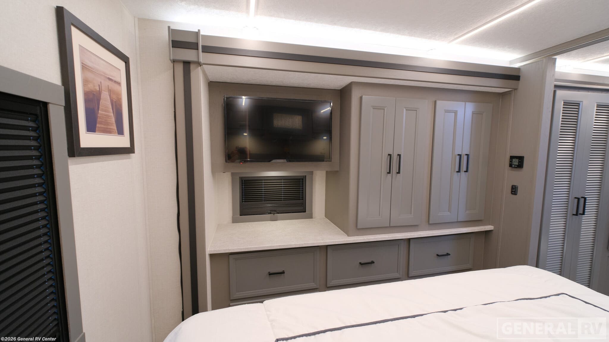 The 2026 Coachmen Encore 335FS is a Class A gas motorhome that blends residential comfort with dependable road performance, making it a top pick for travelers seeking long-term luxury on the go. Built on the reliable Ford F-53 chassis and powered by a 7.3L V8 engine, the 335FS stretches 35 feet 4 inches in length and offers a strong, stable drive with a 22,000-pound GVWR and an 80-gallon fuel tank. Its sleek exterior is enhanced by high-gloss gelcoat sidewalls, dual power awnings (10' and 15'), and an outdoor entertainment center with an LED TV and kitchen setup—perfect for outdoor living. Inside, the Encore 335FS offers a thoughtfully laid-out floorplan with stylish maple cabinetry, LED lighting, and residential vinyl flooring throughout. The front living area includes theater seating, a dinette, and a 40-inch TV with a built-in electric fireplace—ideal for relaxing evenings. The kitchen is fully equipped with a stainless-steel residential refrigerator, solid-surface countertops, a three-burner cooktop with oven, microwave, and plenty of storage, making meal prep easy and enjoyable. The private rear bedroom features a king-size bed, wardrobe storage, overhead cabinets, and a dedicated TV. It also includes prep space for a stackable washer and dryer, offering convenience for extended trips. The bathroom features a porcelain toilet, radius shower, skylight, and linen storage. Driver comfort is also a priority, with swivel captain’s chairs, a 10" touchscreen with Apple CarPlay and Android Auto, and a tilt/telescoping steering wheel. For added safety and functionality, the coach includes side and rearview cameras, automatic leveling jacks, a 5.5kW generator, 50-amp service, and Azdel composite construction for durability and moisture resistance. With its high-end features and road-ready build, the 2026 Encore 335FS is built for travelers who want it all.