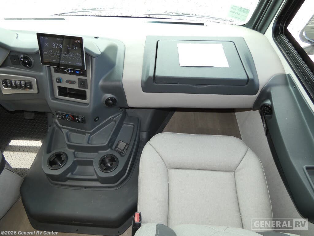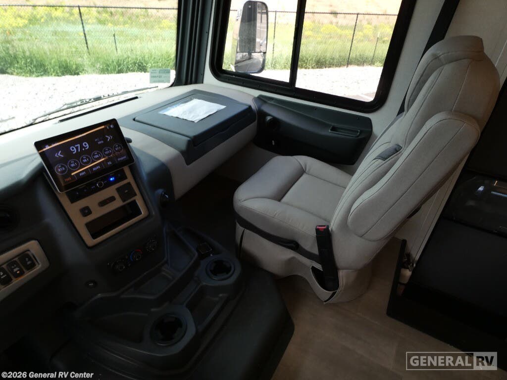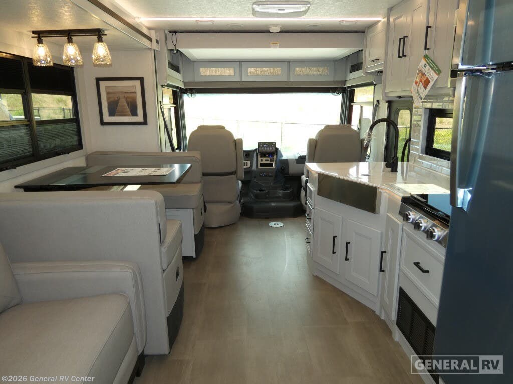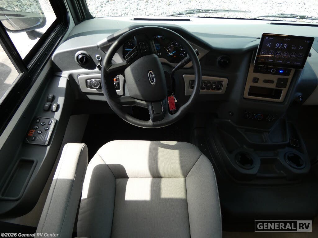 The 2026 Coachmen Encore 335FS is a Class A gas motorhome that blends residential comfort with dependable road performance, making it a top pick for travelers seeking long-term luxury on the go. Built on the reliable Ford F-53 chassis and powered by a 7.3L V8 engine, the 335FS stretches 35 feet 4 inches in length and offers a strong, stable drive with a 22,000-pound GVWR and an 80-gallon fuel tank. Its sleek exterior is enhanced by high-gloss gelcoat sidewalls, dual power awnings (10' and 15'), and an outdoor entertainment center with an LED TV and kitchen setup—perfect for outdoor living. Inside, the Encore 335FS offers a thoughtfully laid-out floorplan with stylish maple cabinetry, LED lighting, and residential vinyl flooring throughout. The front living area includes theater seating, a 78-inch sofa hide-a-bed, and a 40-inch TV with a built-in electric fireplace—ideal for relaxing evenings. The kitchen is fully equipped with a stainless-steel residential refrigerator, solid-surface countertops, a three-burner cooktop with oven, microwave, and plenty of storage, making meal prep easy and enjoyable. The private rear bedroom features a king-size bed, wardrobe storage, overhead cabinets, and a dedicated TV. It also includes prep space for a stackable washer and dryer, offering convenience for extended trips. The bathroom features a porcelain toilet, radius shower, skylight, and linen storage. Driver comfort is also a priority, with swivel captain’s chairs, a 10" touchscreen with Apple CarPlay and Android Auto, and a tilt/telescoping steering wheel. For added safety and functionality, the coach includes side and rearview cameras, automatic leveling jacks, a 5.5kW generator, 50-amp service, and Azdel composite construction for durability and moisture resistance. With its high-end features and road-ready build, the 2026 Encore 335FS is built for travelers who want it all.