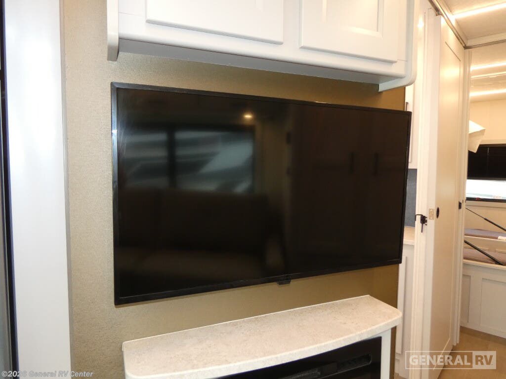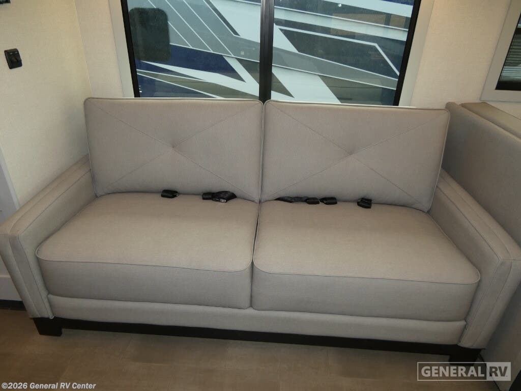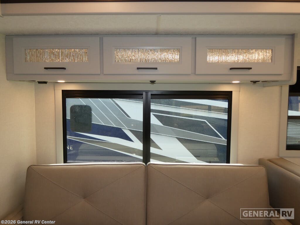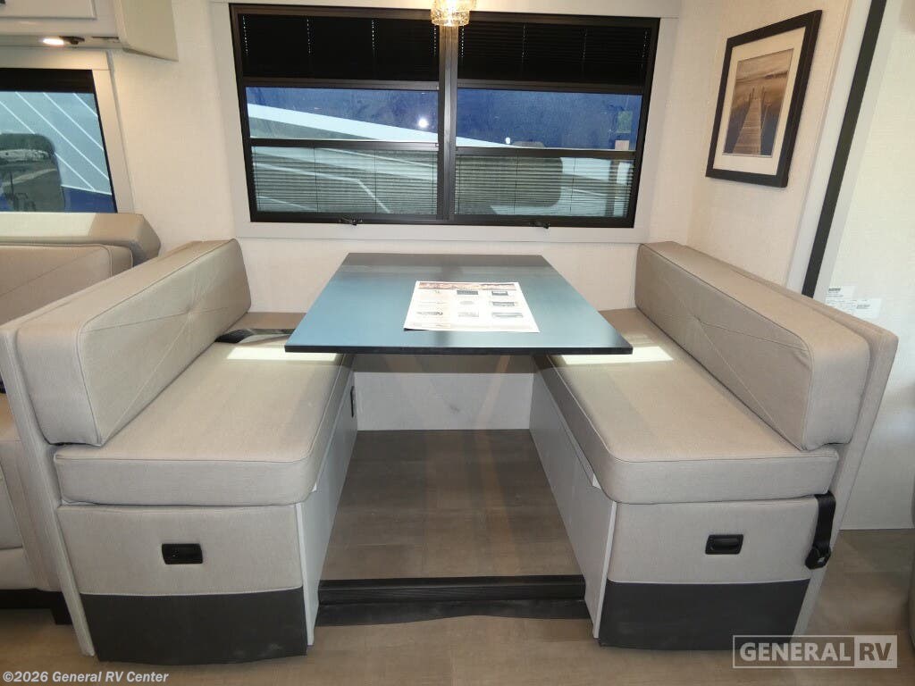 The 2026 Coachmen Encore 335FS is a Class A gas motorhome that blends residential comfort with dependable road performance, making it a top pick for travelers seeking long-term luxury on the go. Built on the reliable Ford F-53 chassis and powered by a 7.3L V8 engine, the 335FS stretches 35 feet 4 inches in length and offers a strong, stable drive with a 22,000-pound GVWR and an 80-gallon fuel tank. Its sleek exterior is enhanced by high-gloss gelcoat sidewalls, dual power awnings (10' and 15'), and an outdoor entertainment center with an LED TV and kitchen setup—perfect for outdoor living. Inside, the Encore 335FS offers a thoughtfully laid-out floorplan with stylish maple cabinetry, LED lighting, and residential vinyl flooring throughout. The front living area includes theater seating, a 78-inch sofa hide-a-bed, and a 40-inch TV with a built-in electric fireplace—ideal for relaxing evenings. The kitchen is fully equipped with a stainless-steel residential refrigerator, solid-surface countertops, a three-burner cooktop with oven, microwave, and plenty of storage, making meal prep easy and enjoyable. The private rear bedroom features a king-size bed, wardrobe storage, overhead cabinets, and a dedicated TV. It also includes prep space for a stackable washer and dryer, offering convenience for extended trips. The bathroom features a porcelain toilet, radius shower, skylight, and linen storage. Driver comfort is also a priority, with swivel captain’s chairs, a 10" touchscreen with Apple CarPlay and Android Auto, and a tilt/telescoping steering wheel. For added safety and functionality, the coach includes side and rearview cameras, automatic leveling jacks, a 5.5kW generator, 50-amp service, and Azdel composite construction for durability and moisture resistance. With its high-end features and road-ready build, the 2026 Encore 335FS is built for travelers who want it all.