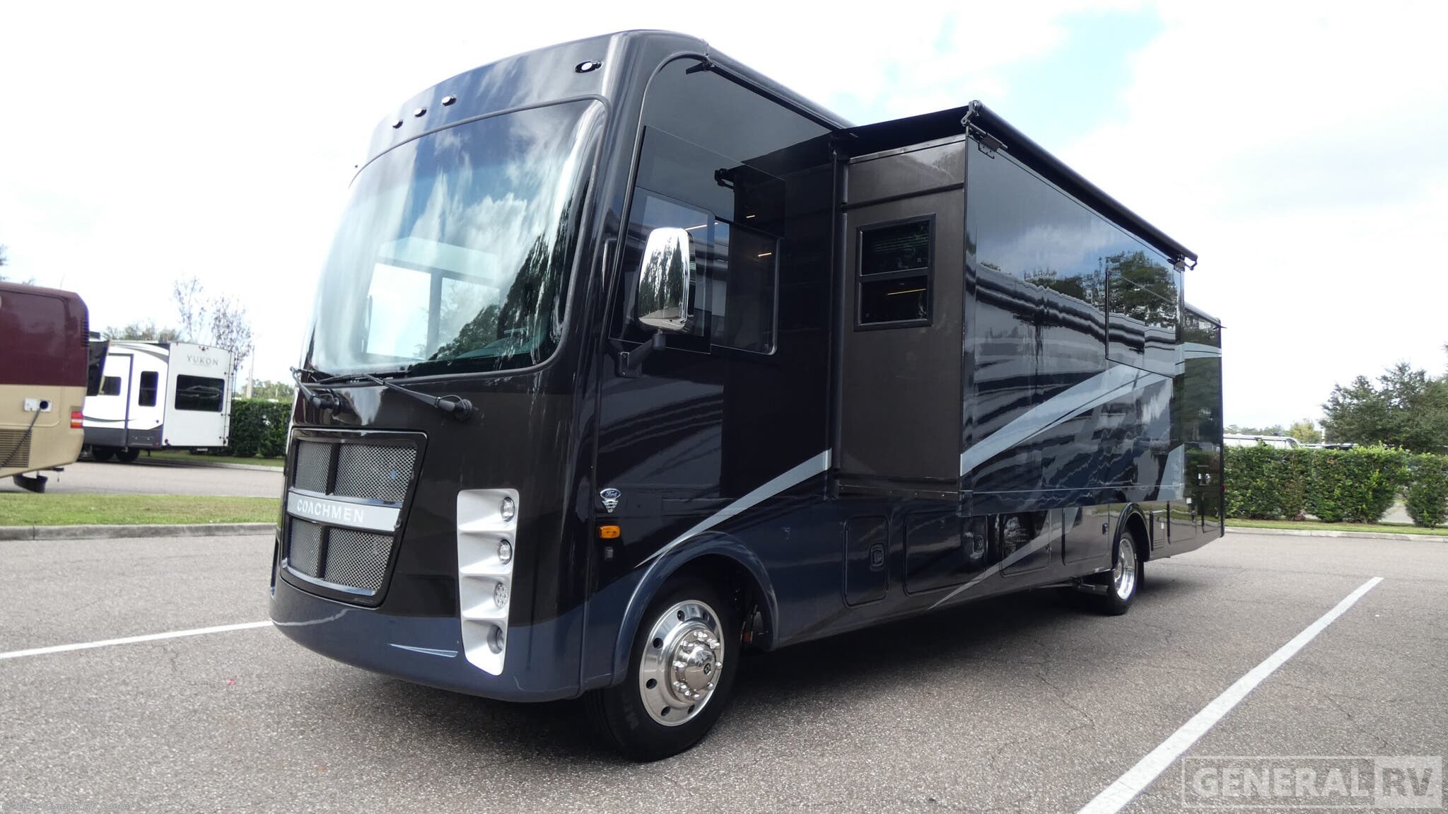 Experience the ultimate in luxury travel with the 2026 Coachmen Encore 355DS. This RV is designed to provide all the comforts of home while on the road. With a spacious layout that includes a front living area and a center kitchen, you'll find plenty of room to relax and entertain. The kitchen is equipped with a full-size electric refrigerator and a three-burner cooktop, making meal prep a breeze. The central bath, featuring a plastic and glass shower, offers convenience and style, while the rear king bedroom provides a peaceful retreat after a day of adventure. The Encore 355DS is perfect for families or groups, comfortably sleeping up to eight people. It includes a king bed, a double bed, and two convertible sleeping areas. The thoughtful design ensures everyone has their space, with ample storage throughout. Enjoy the outdoors with the 20 ft. powered retractable awning, perfect for shaded relaxation. Built on a Ford F53 chassis with a powerful 350-horsepower engine, this RV is ready to take you on your next journey with ease and confidence. Whether you're traveling cross-country or enjoying a weekend getaway, the Coachmen Encore 355DS offers the perfect blend of comfort, style, and functionality. For more information, visit your nearest General RV dealership and start your adventure today!