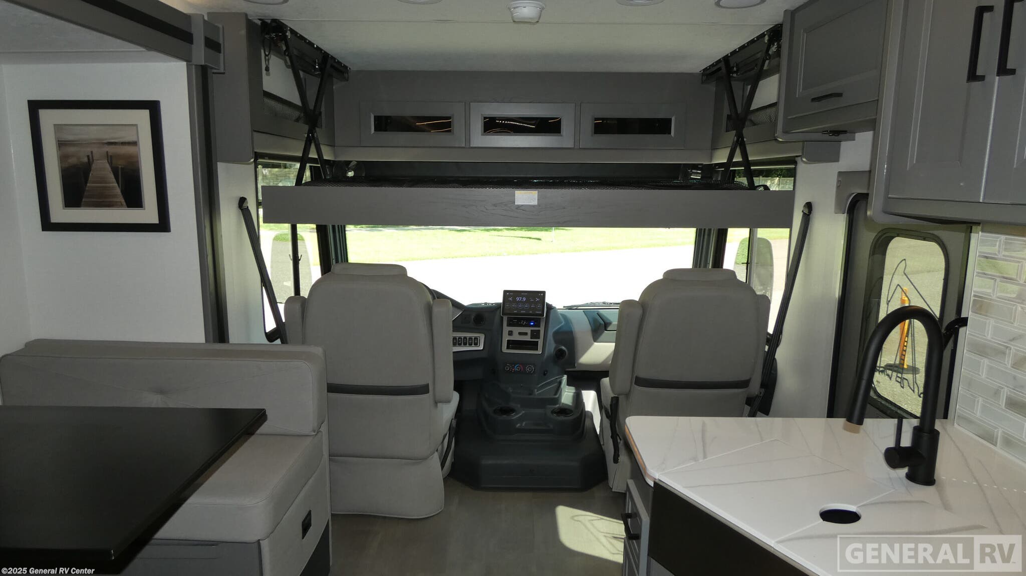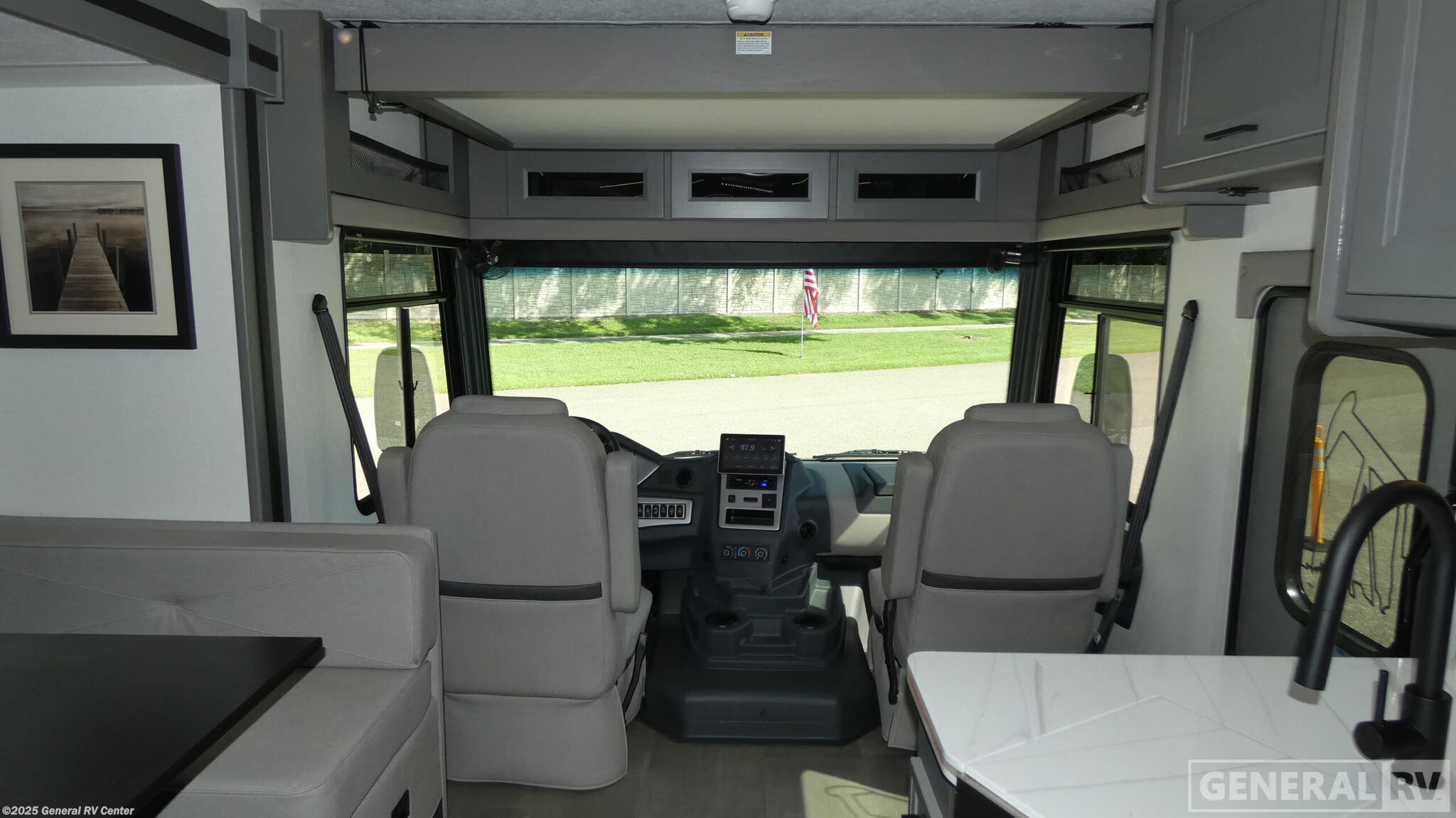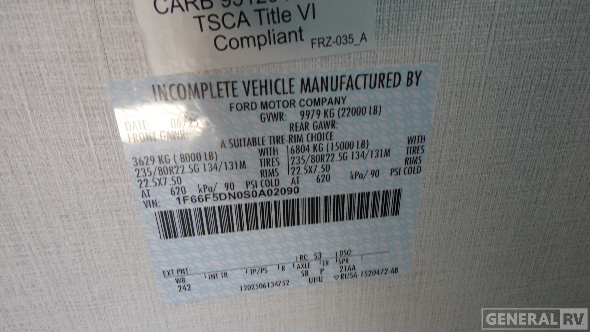 Coachmen RV Encore Class A gas motorhome 375RB highlights: Bath and a Half Bunk/Office/Wardrobe Bunk Over Cab Private Bedroom Exterior LED TV It's a clean decision to take this motorhome on your next vacation with a bath and a half! The full rear bathroom has a 38" x 30" shower and creates a master suite with the entrance going into the private bedroom which features a 70" x 74" king bed slide with CPAP station above it, a wardrobe, and a 32" LED TV with storage space. Just outside the bedroom is a prepped area to add an optional washer and dryer and a versatile space that can be transformed into bunks, an office, or a wardrobe area instead. The half bathroom is conveniently located close to the living/kitchen area for easy access for everyone. There is an 86" sofa with bed for extra sleeping space, but if you don't need the extra sleeping area then you can switch it out for the optional power theater seating. A 42" x 72" booth dinette could also transform into a sleeping space and the 47" x 81" drop down bunk over cab can be used for sleeping or storage! Each one of these Coachmen RV Encore Class A gas motorhomes have been engineered for maximum comfort! A Ford F53 chassis holds them together and a 7.3L V8 engine powers them to each destination. Both the crowned, laminated fiberglass roof and the high gloss gelcoat sidewalls come with Azdel superlite composite to prevent your unit from rotting away. Automatic leveling jacks make for an easy and quick set up when you arrive. You will appreciate having an exterior propane hookup and the pass-through full basement storage area has plenty of space for all of your outdoor gear, plus the radius trunk doors come with slam latch. With high definition back up and side cameras, you can travel with peace of mind. Come find your favorite one today!