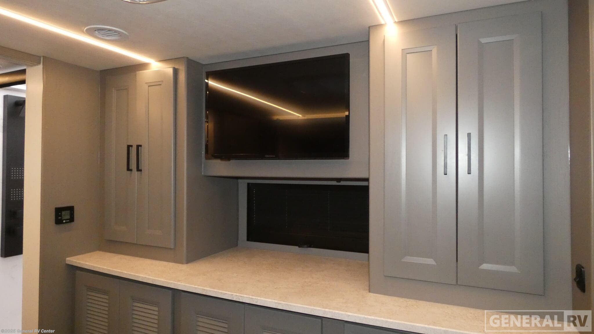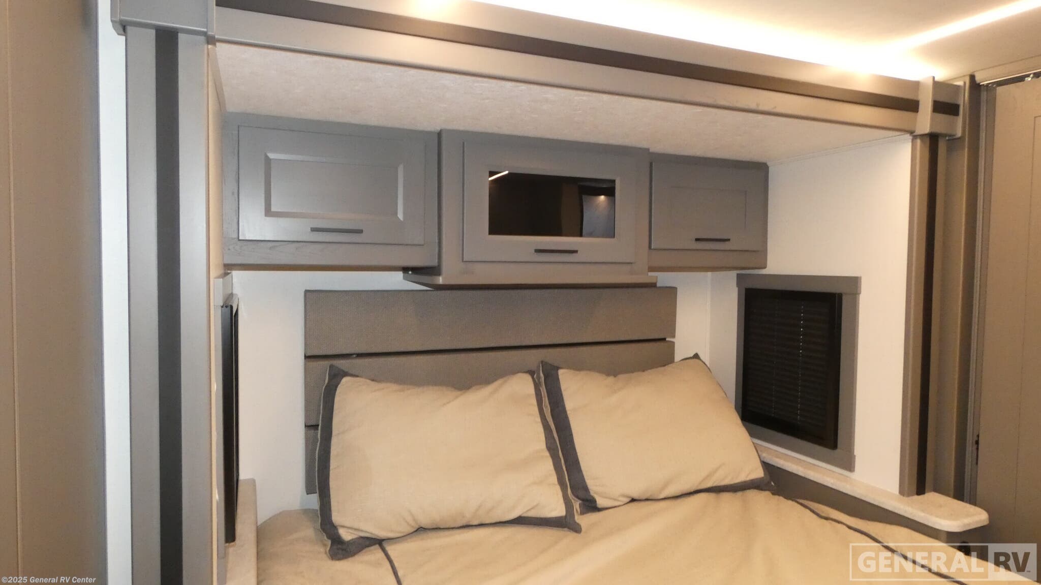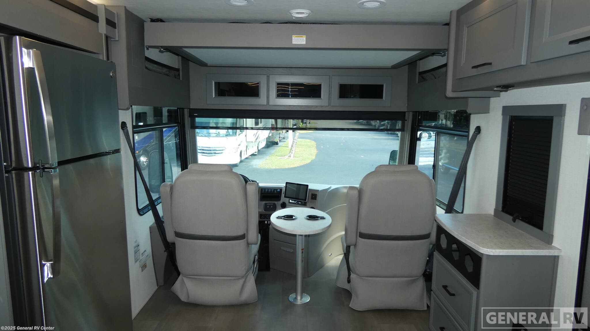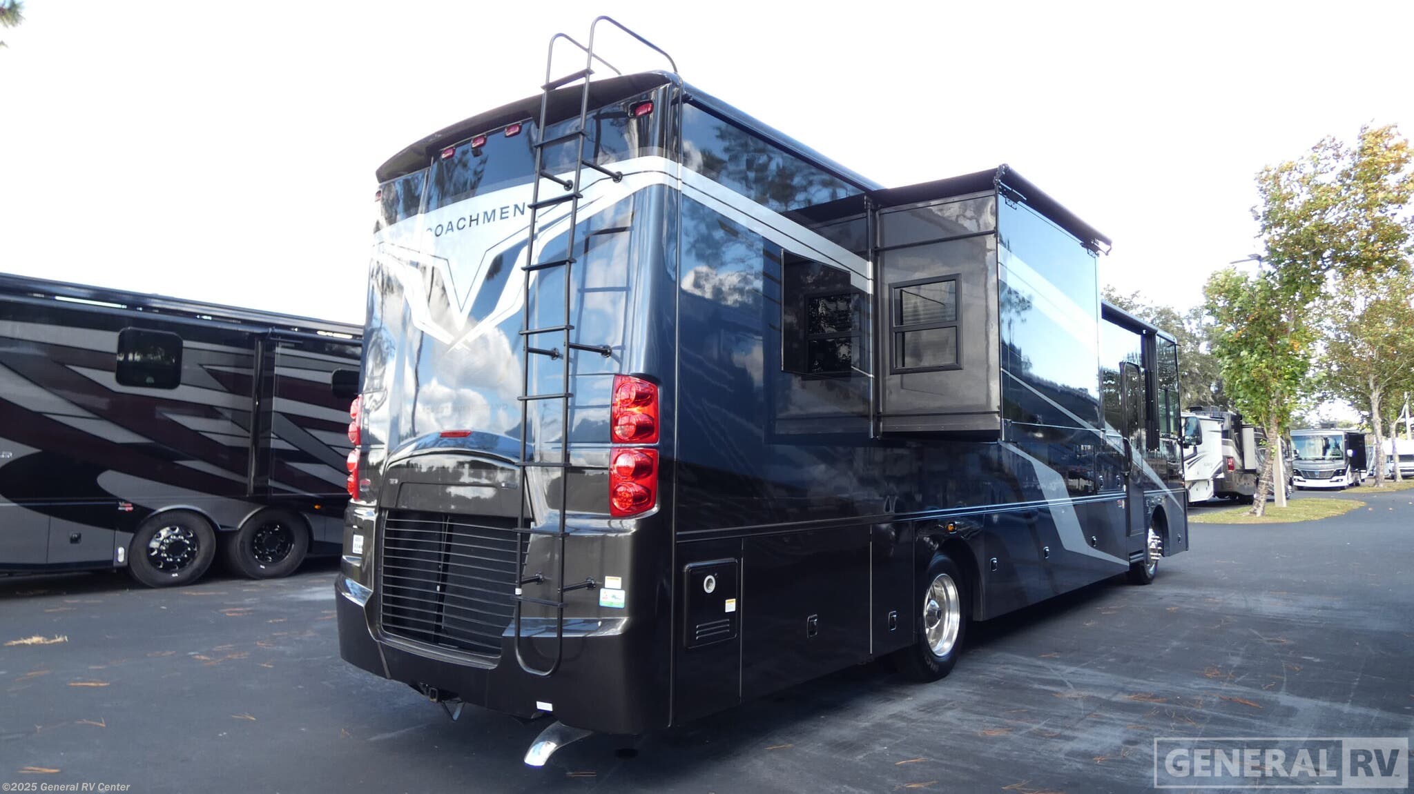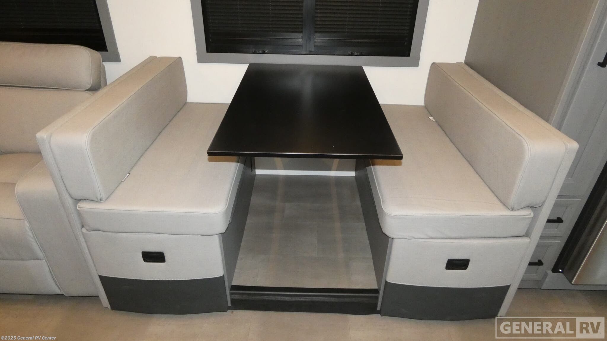 ## Coachmen RV Encore SE Class A diesel motorhome 365RB highlights - King Bed Slide Out - Fireplace - Booth Dinette - Cockpit Table - Three Burner Cooktop One step inside this coach and you'll be sold! There are two slides out for more space, a master bedroom with a king bed slide out, plus a rear bath with ample counter space, a linen closet, and a closet with a hamper. You'll find the private toilet and second sink mid coach for convenience. After you've spent the day outdoors, head back inside to make dinner on the three burner cooktop or use the stainless steel 30" over-the-range microwave. There is a residential refrigerator and a pantry to store food, plus a farm sink that provides plenty of space to wash dishes. After dinner, you can relax on the theater sofa and watch a movie on the LED TV, and there is a fireplace here to make it feel more like home. Your guests can find additional sleeping space on the booth dinette and the drop-down overhead bunk! With any Encore SE Class A diesel motorhome by Coachmen you will enjoy comfort at every turn. The high gloss gelcoat sidewalls include Azdel superlite composite for maximum durability, and the full-body paint provides a sleek look you are sure to love. Outside, you will find aluminum side swing compartment doors to easily store your gear, slide out awnings, fuel fills on both sides of the coach, and fully automatic leveling jacks to name a few conveniences. Once you head inside you will feel right at home with a stylish kitchen backsplash, solar privacy shades throughout, flat panel hardwood cabinet doors throughout, and a residential style headboard in the bedroom. These coaches also include an outside entertainment center with a TV, an LED TV inside, a King Jack TV/radio antenna, and they are pre-wired for a satellite dish and Blu-Ray player so you'll never get bored!