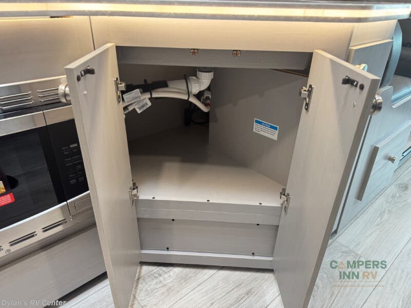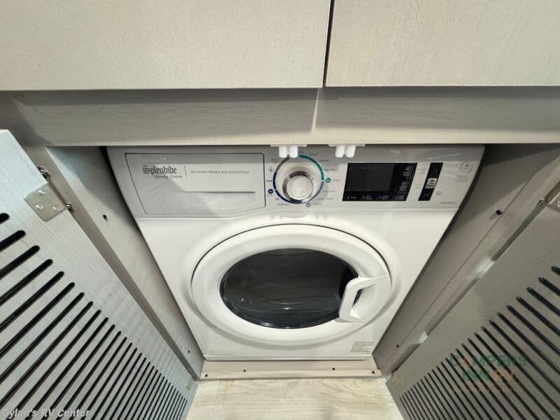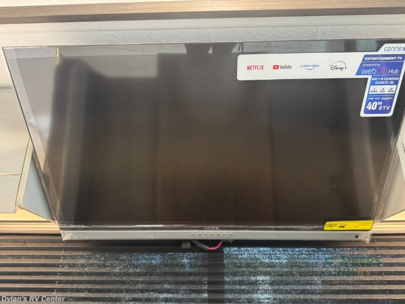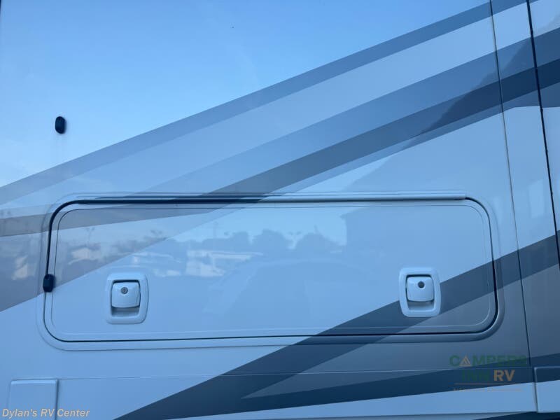 Pack your bags and head across the state in this durable coach. You can sleep five to six each night between the queen bed in the rear bedroom, the cab-over bunk, plus the booth dinette that will convert to sleeping space. The power recliners are sure to bring comfort after a day of traveling, or you can head outdoors to enjoy the outside TV and exterior grill table. When you get hungry, you can make lunch on the induction cooktop or in the convection microwave, and there is a 10 cu. ft. 12V double door refrigerator to keep your cold items fresh. A full bath is ready for you when you want to freshen up, and you'll find a wardrobe right across from the bath to keep clothes and linens ready to use. And the washer and dryer combo prep gives you the option to add these appliances if you choose!