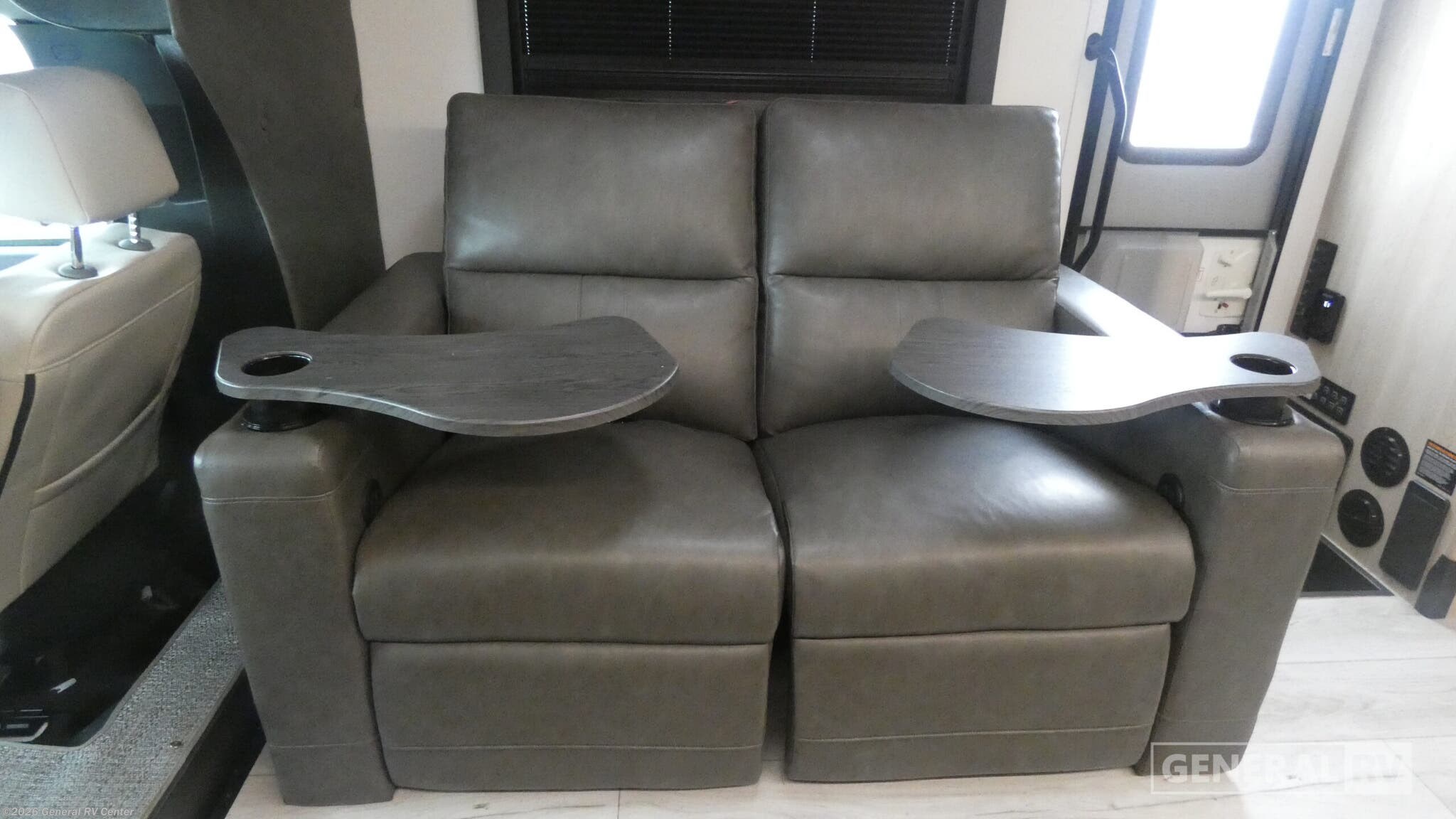Coachmen Entourage Super C diesel motorhome 320LV highlights: Rear Bedroom Kitchen Pantry Cab-Over Bunk Outdoor Entertainment Pack your bags and head across the state in this durable coach. You can sleep five to six each night between the queen bed in the rear bedroom, the cab-over bunk, plus the booth dinette that will convert to sleeping space. The power recliners are sure to bring comfort after a day of traveling, or you can head outdoors to enjoy the outside TV and exterior grill table. When you get hungry, you can make lunch on the induction cooktop or in the convection microwave, and there is a 10 cu. ft. 12V double door refrigerator to keep your cold items fresh. A full bath is ready for you when you want to freshen up, and you'll find a wardrobe right across from the bath to keep clothes and linens ready to use. And the washer and dryer combo prep gives you the option to add these appliances if you choose! The Entourage is Coachmen's first super C diesel motorhome and it is packed with upscale appointments and solid construction so you can enjoy the RV lifestyle for years to come. This coach features a 4x4 diesel chassis (either a Chevy Silverado 5500 with a V8 6.6L diesel engine, or International CV chassis, depending on the model you choose), plus 50 amp service and a 2,000 watt inverter for all your power needs. The mandatory Icon Package includes a porcelain macerator toilet, auto generator start with dual batteries, 50 amp service, a tankless water heater, and more!
