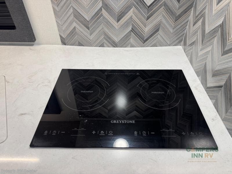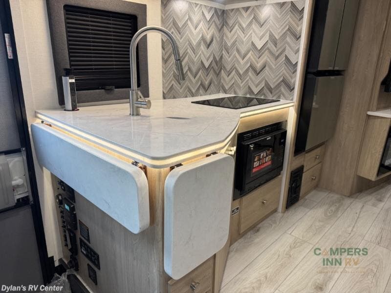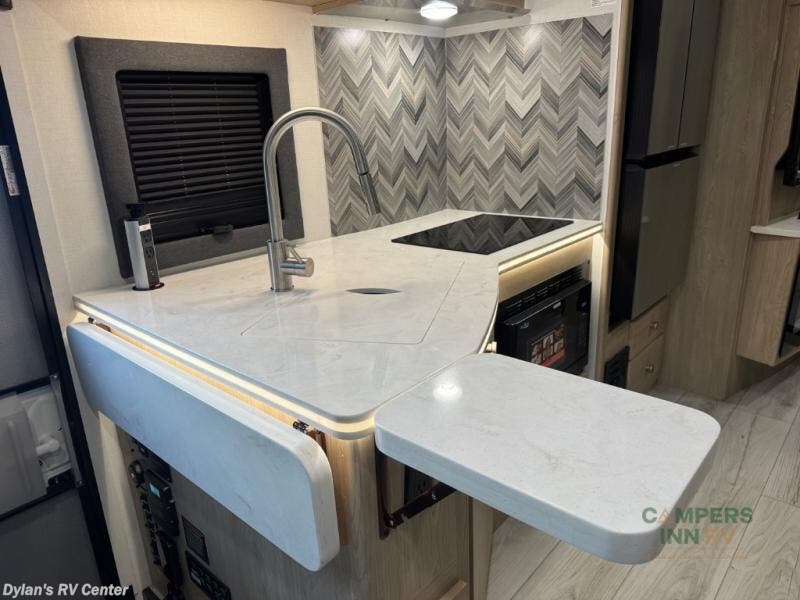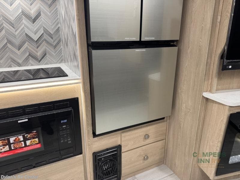 If you're looking for a coach with more sleeping space so your whole crew can join, take a look at this Entourage! You will have your own rear private bedroom with a power inclining king bed slide out, a dresser, plus wardrobe that is washer and dryer ready. Your guests can sleep on the sofa, booth dinette, set of bunk beds, or cab-over bunk, and the full bath is close by for easy use. The kitchen is fully equipped with an induction cooktop, a residential convection microwave, and a 10-cu. ft. 12V double door refrigerator for food storage. You will enjoy your time outdoors as well since there is an outside entertainment center and an outside kitchen! The Entourage is Coachmen's first super C diesel motorhome and it is packed with upscale appointments and solid construction so you can enjoy the RV lifestyle for years to come. This coach features a 4x4 diesel chassis (either a Chevy Silverado 5500 with a V8 6.6L diesel engine, or International CV chassis, depending on the model you choose), plus 50-amp service and a 2,000-watt invertor for all your power needs. The mandatory Icon Package includes a porcelain macerator toilet, auto generator start with dual batteries, 50-amp service, a tankless water heater, and more!
