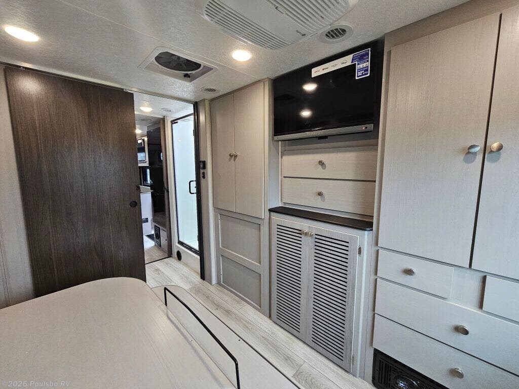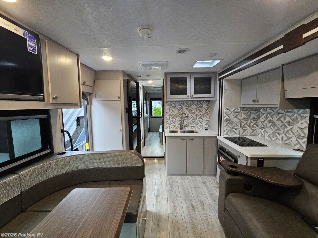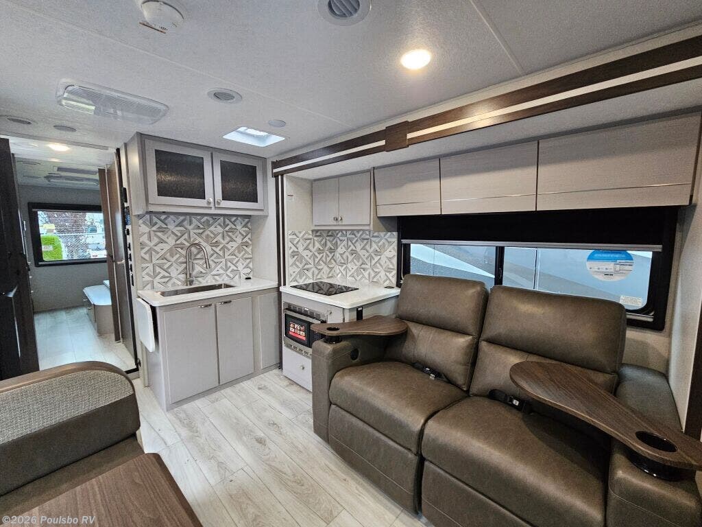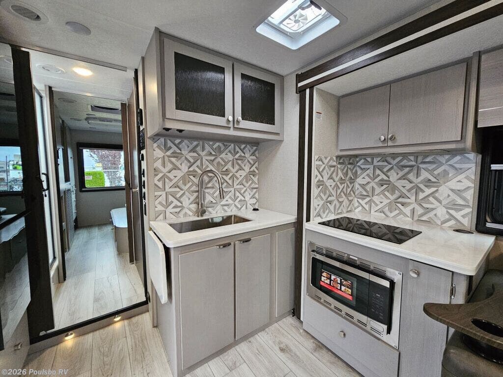 Experience the freedom and comfort of the 2026 Coachmen Entourage 330DS, a new diesel fifth wheel expertly designed to offer ample space and convenience for families and travel enthusiasts alike. Stretching to almost 34 feet, this RV comfortably sleeps six people with well-crafted arrangements that enhance rest and privacy for all aboard. The interior living area is carefully laid out to provide an open, welcoming space where friends and family can gather, unwind, and enjoy quality time together. Two slide outs intelligently expand the indoor area, creating generous extra room that makes it easy to move around and socialize without feeling confined. Outside, the single awning extends your living space into the fresh air, perfect for shaded relaxation or outdoor meals. Practical features like leveling jacks ensure quick setup and stable comfort wherever your travels take you. With a towing capacity of 14,500 pounds, this model allows you to journey confidently to a variety of destinations. Every element is designed to make your RV lifestyle smoother and more enjoyable, from the comfortable sleeping accommodations to the versatile living areas and outdoor conveniences. As a family-owned, award-winning local RV dealer with multiple locations in Sumner, Everett, Kent, and Mt. Vernon Washington, Poulsbo RV here to help you find the perfect RV. Stock#: M3751, VIN: 1HTKJPVK8PH680267.