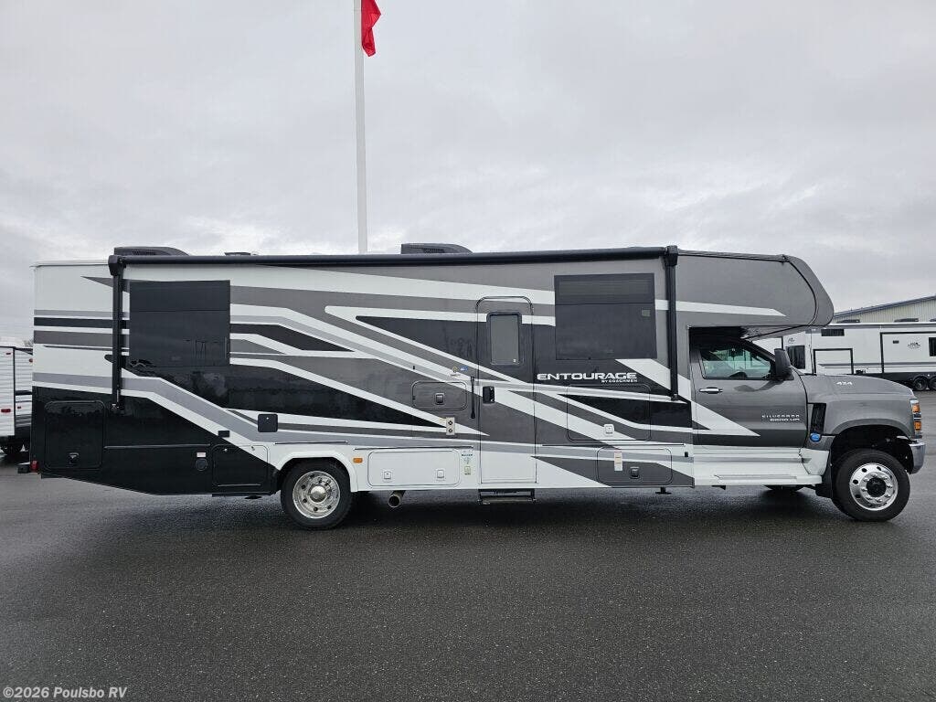 The 2026 Coachmen Entourage 320LV offers an exceptional blend of style, comfort, and functionality perfect for your next RV adventure. This new diesel-powered motorhome spans 33.1 feet in length, providing ample room for you and your travel companions to enjoy a versatile living space designed to comfortably sleep up to six people. The carefully planned interior ensures that every inch counts, delivering a flexible layout that adapts to your needs whether relaxing, dining, or resting after a day on the road. Featuring one slide out, the Entourage expands your living area to maximize comfort and freedom of movement inside. The expansive living area creates an inviting environment that fosters connection and relaxation during your travels. Convenience and usability are front and center with practical additions such as an awning that offers shade and protection for outdoor gatherings and leveling jacks to give you a stable base anywhere you stop. The powerful towing capacity of 14,500 pounds further elevates this motorhome?s capabilities, accommodating additional gear or a trailer for your extended recreational enjoyment. As a family owned, award winning local RV dealer with multiple locations in Sumner, Everett, Kent, and Mt. Vernon Washington, Poulsbo RV here to help you find the perfect RV. Stock#: M3750, VIN: 1HTKJPVKXPH680271.