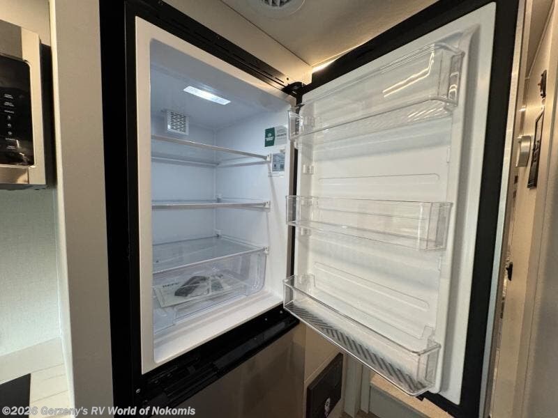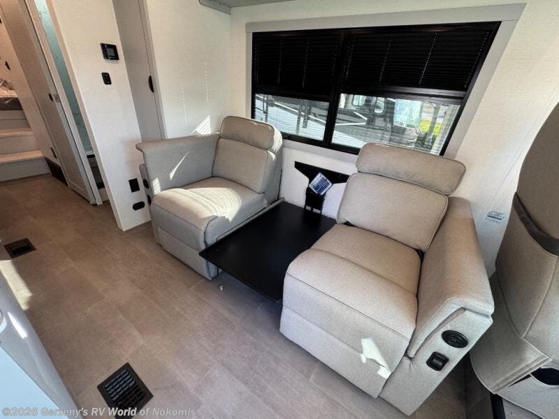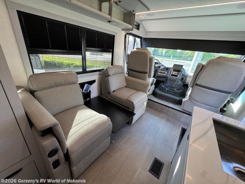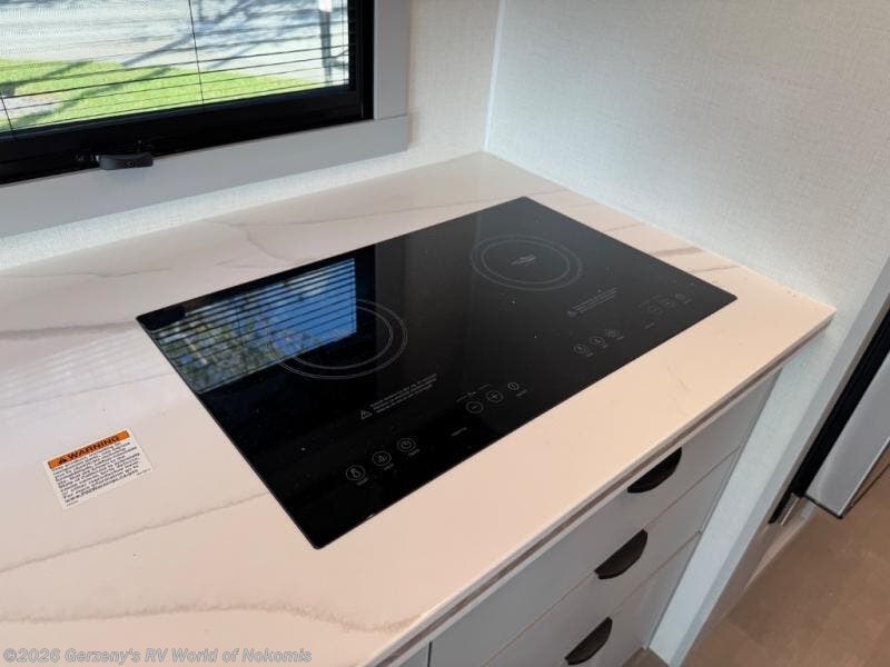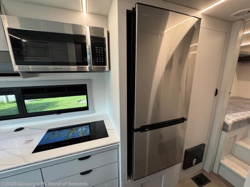 You will find lots of versatility in this coach! There are rear twin beds that can convert into a 95" x 74" bed with an optional 32" TV for movies in bed, a sofa with a sleeper option or you can switch it out for the optional recliners/dinette. The chef can prepare their best home cooked meals with the induction cooktop and stainless steel double door refrigerator to keep your perishables fresh. The full bathroom has a 24" x 36" shower with a skylight above for added natural lighting. There are plenty of overhead cabinets throughout for your items to stay out of the way, plus a 32" TV above the entrance door. You even have an exterior 95" x 38" x 37" mega pass-through storage area for your outdoor gear!
