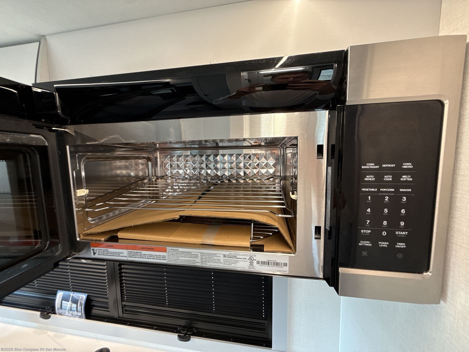 You will find lots of versatility in this coach! There are rear twin beds that can convert into a 95" x 74" bed with an optional 32" TV for movies in bed, a sofa with a sleeper option or you can switch it out for the optional recliners/dinette. The chef can prepare their best home cooked meals with the induction cooktop and stainless steel double door refrigerator to keep your perishables fresh. The full bathroom has a 24" x 36" shower with a skylight above for added natural lighting. There are plenty of overhead cabinets throughout for your items to stay out of the way, plus a 32" TV above the entrance door. You even have an exterior 95" x 38" x 37" mega pass-through storage area for your outdoor gear!