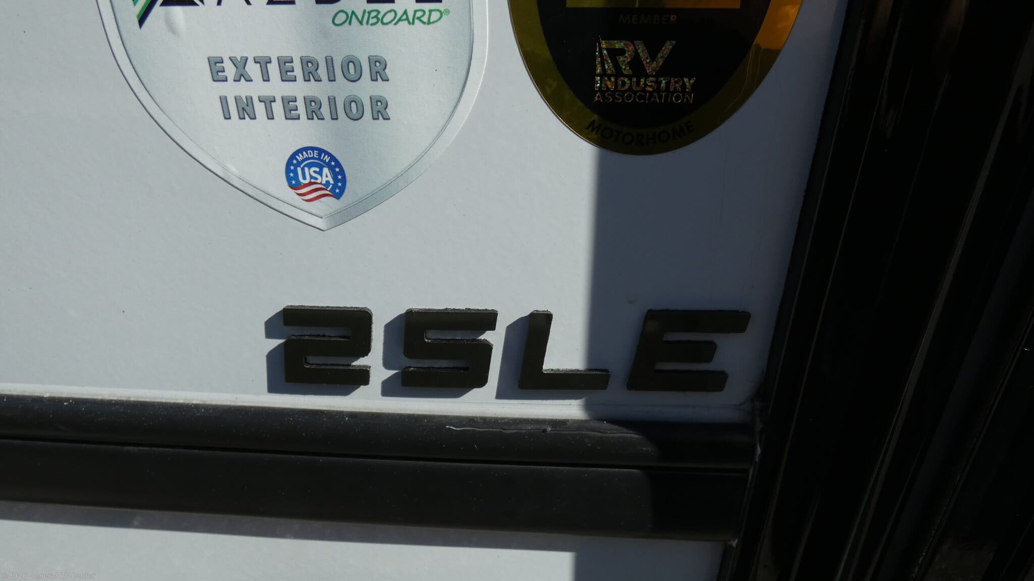 **Coachmen Euro Class A gas motorhome 25LE highlights:** * Two Twin Beds * Full Bathroom * Induction Cooktop * Mega Pass-Through Storage You will find lots of versatility in this coach! There are rear twin beds that can convert into a 95" x 74" bed with an optional 32" TV for movies in bed, a sofa with a sleeper option or you can switch it out for the optional recliners/dinette. The chef can prepare their best home cooked meals with the induction cooktop and stainless steel double door refrigerator to keep your perishables fresh. The full bathroom has a 24" x 36" shower with a skylight above for added natural lighting. There are plenty of overhead cabinets throughout for your items to stay out of the way, plus a 32" TV above the entrance door. You even have an exterior 95" x 38" x 37" mega pass-through storage area for your outdoor gear! Enjoy the compact and stylish look of a European coach with the Euro Class A gas motorhome by Coachmen RV! There is a fiberglass front cap and a Ford F53 7.3L V8 chassis that will add to the life of your RV. The driver will love having a back up monitor with side view cameras, and the passenger can use the computer workstation to work remotely if needed. There is also traction control, cruise control, plus a tilt and telescoping steering wheel that will make the drive that much easier. An exterior propane hook-up also comes standard, along with radius trunk doors for your gear, and exterior storage for your outdoor gear. Head inside to find modern features, like the stainless steel appliances, square windows with day/night shades, and the list goes on!