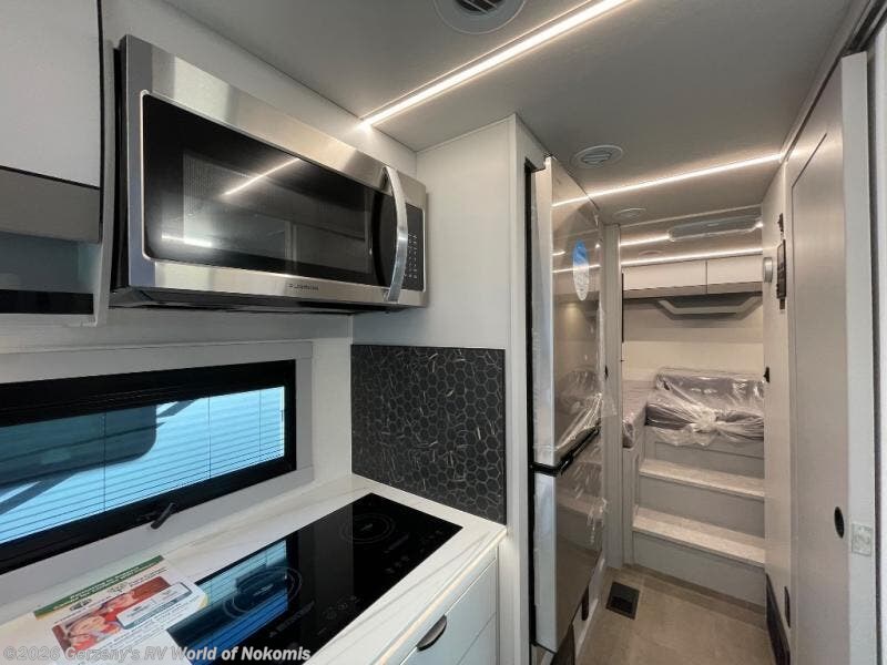 You're sure to have a great time in this sleek motorhome for two! Once you arrive at your destination, the reclining/swivel captain's seats can become a part of the living room where you'll also find a slide out with recliners/dinette. And if you're needing more sleeping space, just choose the optional sofa with a sleeper in place of the dinette! You can then make lunch on the induction cooktop and grab a cold drink from the stainless steel double door refrigerator. The full bath includes a glass shower door, an on-demand water heater, and a shower skylight to let natural light in. Head to the rear bedroom where you can get a great night's rest on the two twin beds with a nightstand in between to set your phone and book on. There is also a 32" bedroom TV so you can watch movies in bed!