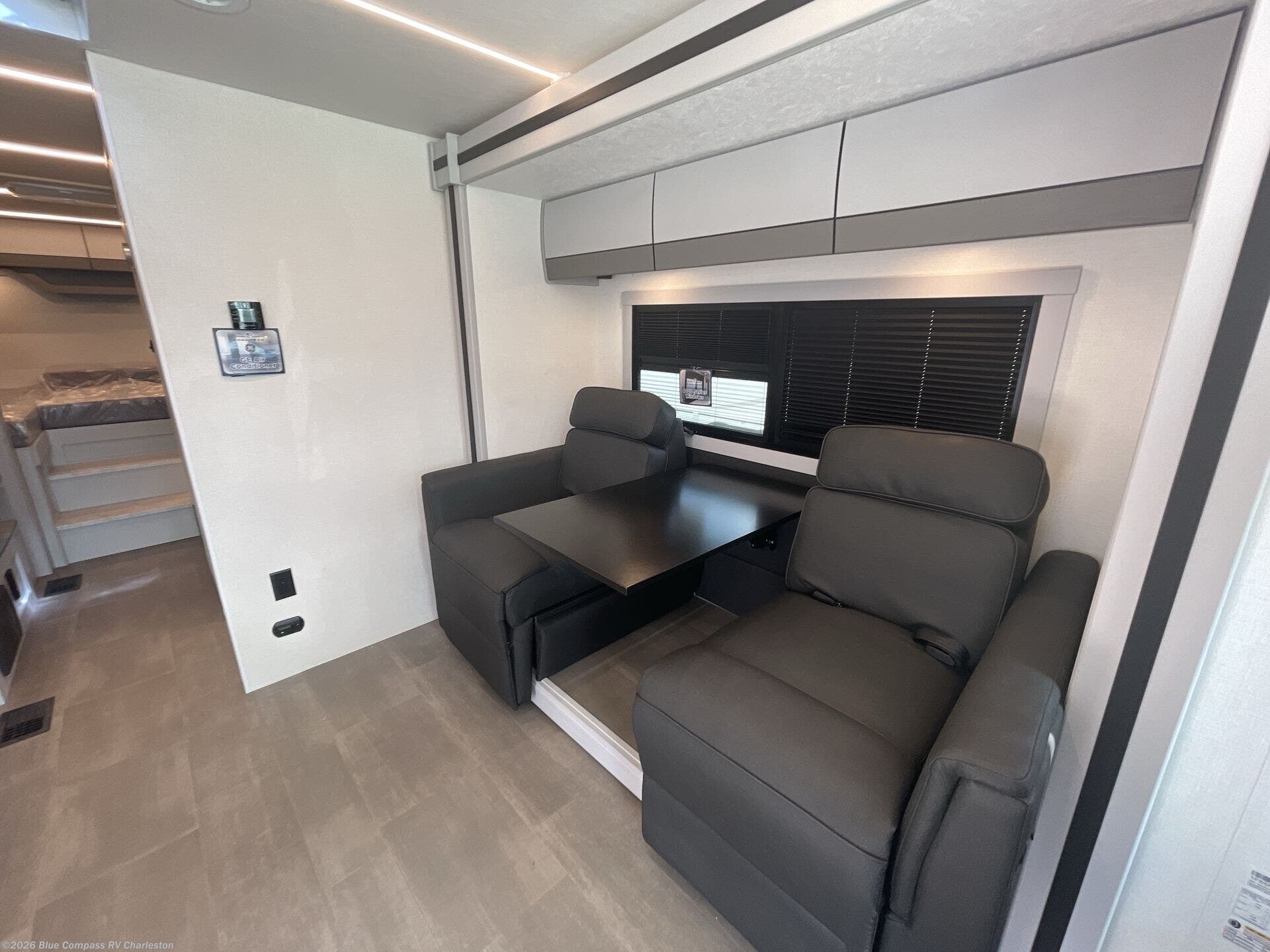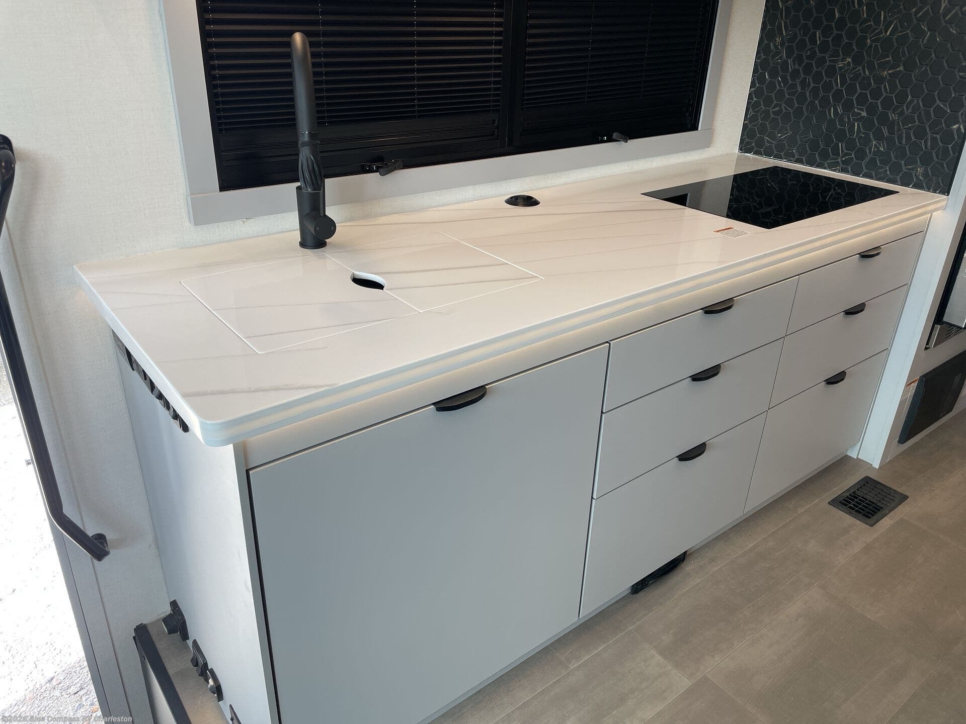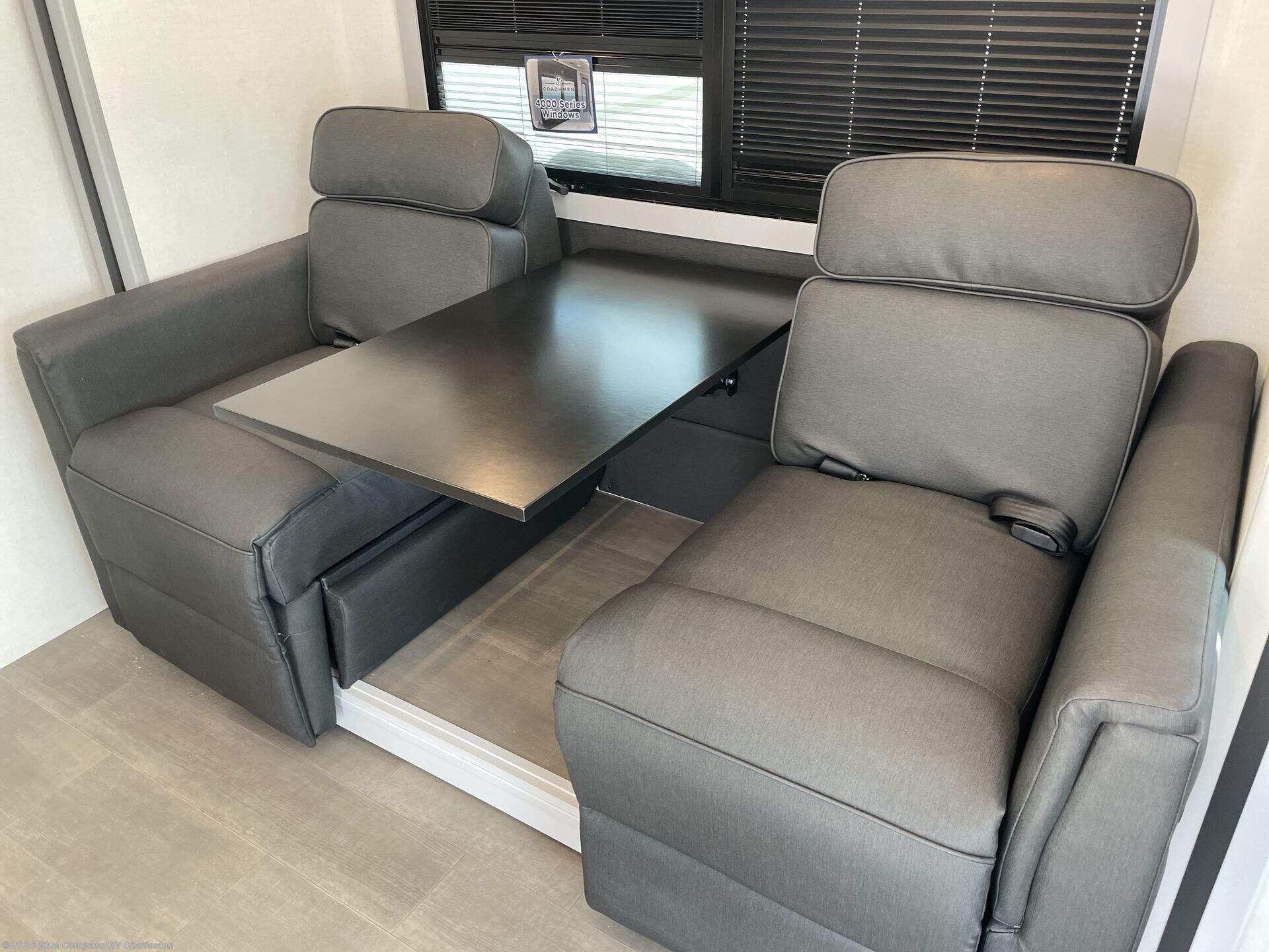You're sure to have a great time in this sleek motorhome for two! Once you arrive at your destination, the reclining/swivel captain's seats can become a part of the living room where you'll also find a slide out with recliners/dinette. And if you're needing more sleeping space, just choose the optional sofa with a sleeper in place of the dinette! You can then make lunch on the induction cooktop and grab a cold drink from the stainless steel double door refrigerator. The full bath includes a glass shower door, an on-demand water heater, and a shower skylight to let natural light in. Head to the rear bedroom where you can get a great night's rest on the two twin beds with a nightstand in between to set your phone and book on. There is also a 32" bedroom TV so you can watch movies in bed!