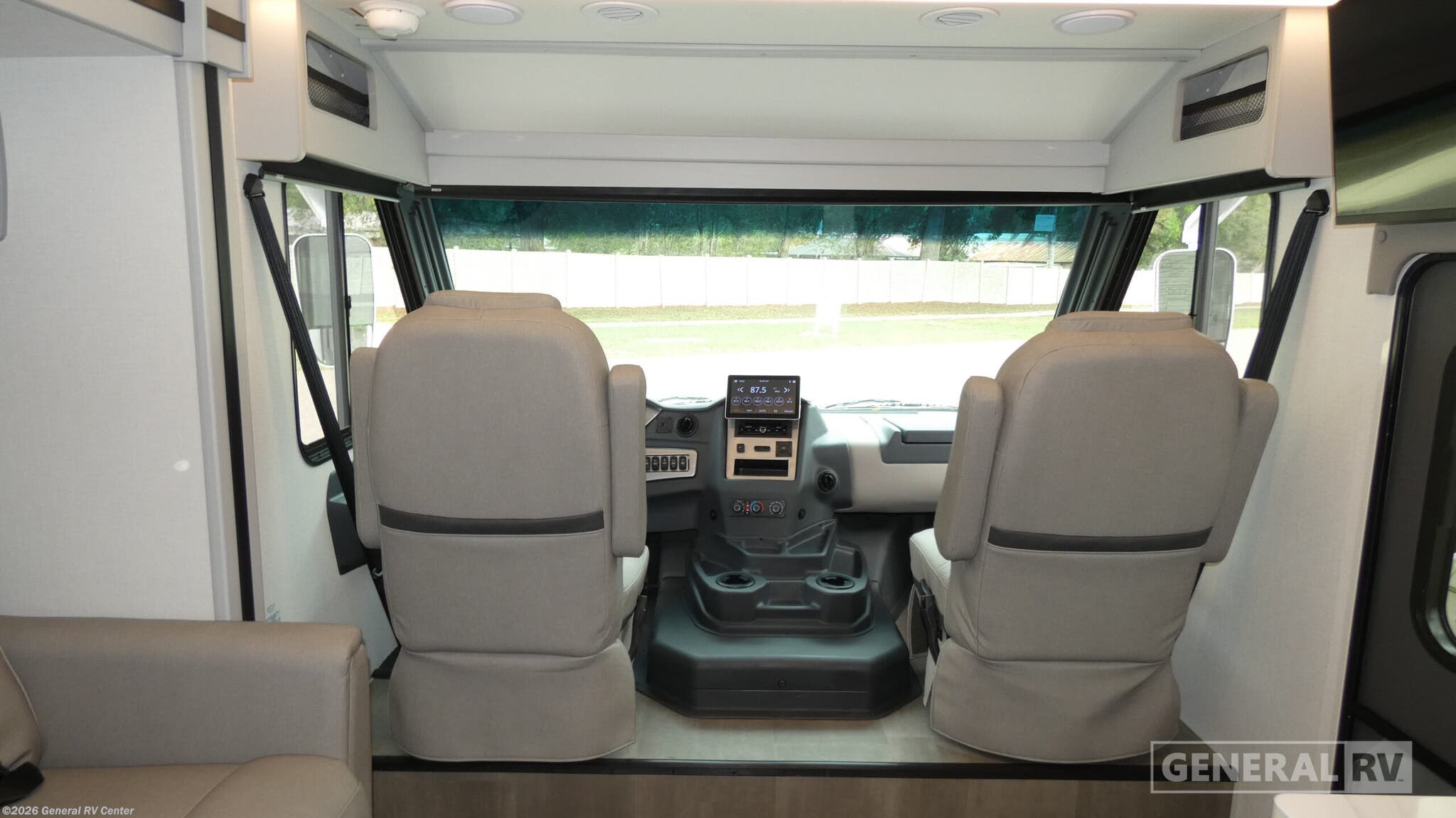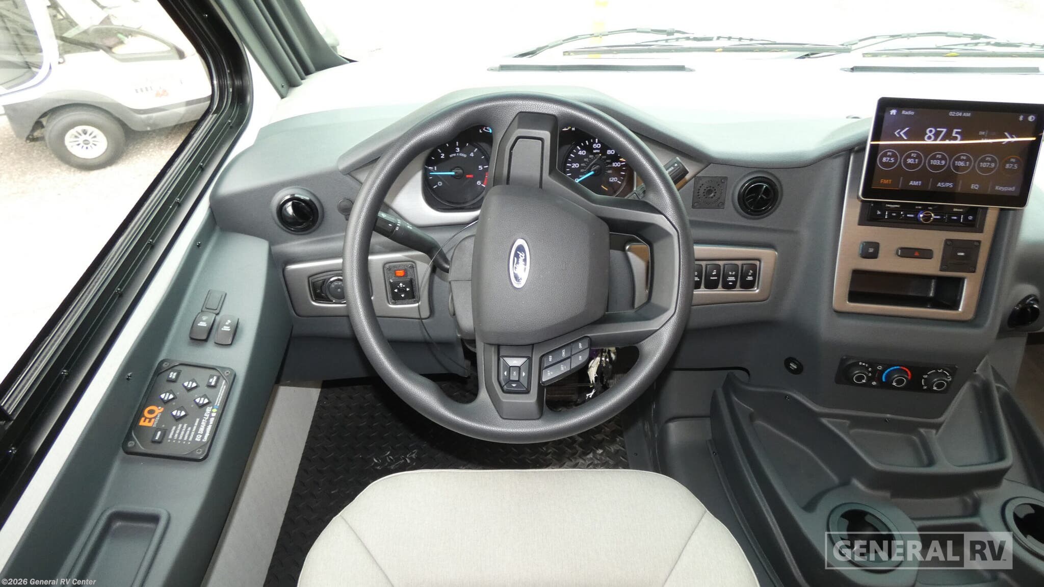 Coachmen Euro Class A gas motorhome 25TB highlights: Spacious Full Bath Induction Cooktop Recliners/Dinette Mega Pass Thru Storage Rear Bedroom You're sure to have a great time in this sleek motorhome for two! Once you arrive at your destination, the reclining/swivel captain's seats can become a part of the living room where you'll also find a slide out with recliners/dinette. You can then make lunch on the induction cooktop and grab a cold drink from the stainless steel double door refrigerator. The full bath includes a glass shower door, an on-demand water heater, and a shower skylight to let natural light in. Head to the rear bedroom where you can get a great night's rest on the two twin beds with a nightstand in between to set your phone and book on. There is also a 32" bedroom TV so you can watch movies in bed! Enjoy the compact and stylish look of a European coach with the Euro Class A gas motorhome by Coachmen RV! There is a crowned, laminated fiberglass roof, a fiberglass front cap, plus a Ford F53 7.3L V8 chassis that will add to the life of your RV. The driver will love having a back up monitor with side view cameras, and the passenger can use the computer workstation to work remotely if needed. There is also traction control, cruise control, plus a tilt and telescoping steering wheel that will make the drive that much easier. An exterior propane hook-up also comes standard, along with radius trunk doors for your gear, and automatic leveling jacks to be set up in no-time. Head inside to find modern features, like the stainless steel appliances, square windows with day/night shades, and the list goes on!