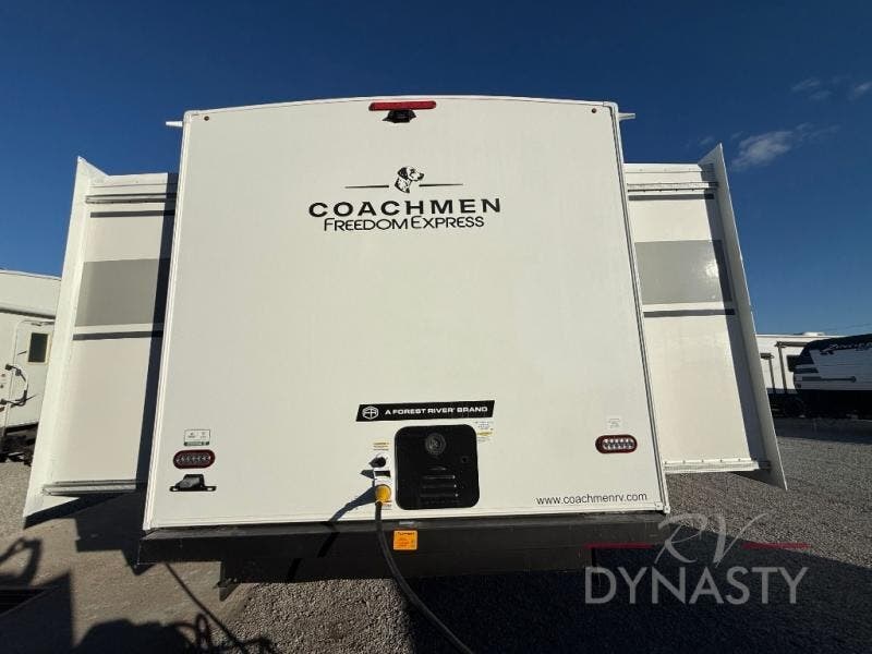 This stunning new Coachmen RV Freedom Express Liberty Edition travel trailers are built on the trusted Freedom Express platform designed with premium features and innovative design elements that will make your journeys unforgettable. Each unit boasts impressive interior space, with a cleverly designed layout and thoughtful touches that make it feel like a home away from home. Flip-up countertop extensions provide extra space for meal prep or work, showing that every detail has been carefully considered to ensure your comfort and convenience. With its perfect blend of style, comfort, and functionality, the Freedom Express Liberty Edition is the ultimate travel trailer for those who crave the freedom to explore and the luxury to savor every moment.