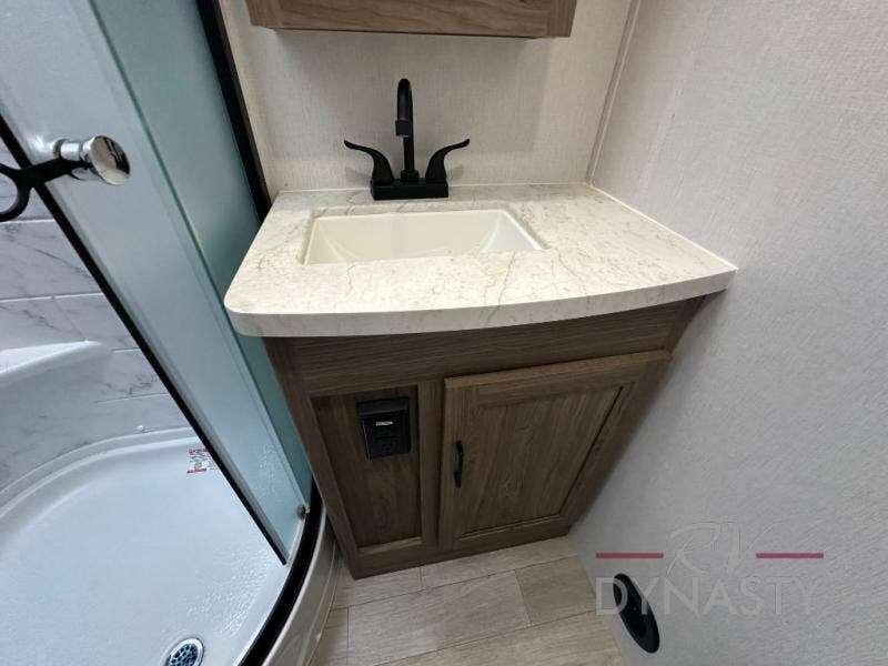 With any Freedom Express Select travel trailer by Coachmen you will find an alumicage construction and vacuum bonded walls with Azdel composite for a trailer made to last. These Select value models come standard with a Bluetooth interior speaker, night shades, and wear-resistant vinyl flooring throughout. You will appreciate the power tongue jack, as well as the Tufflex PVC roof and heated and enclosed underbelly to extend your camping season. A 15K BTU roof A/C will keep you comfortable, and the tankless water heater will provide endless hot showers!