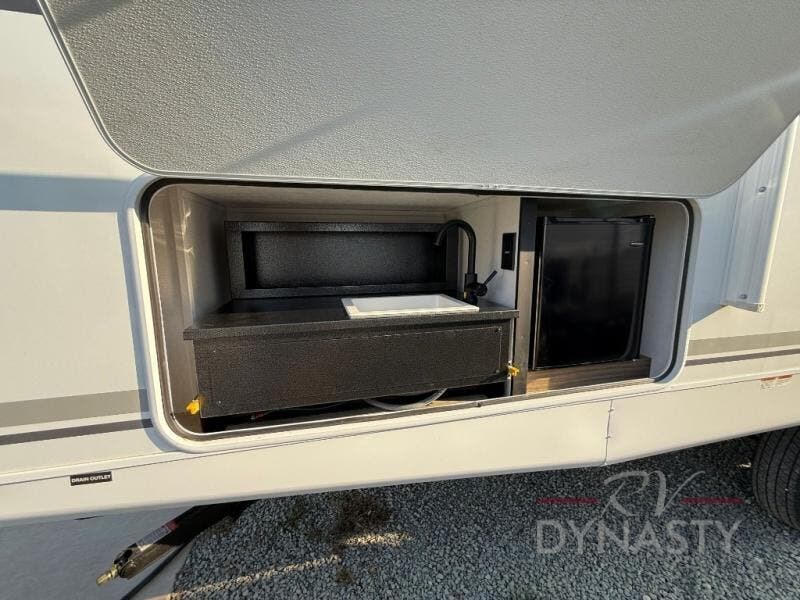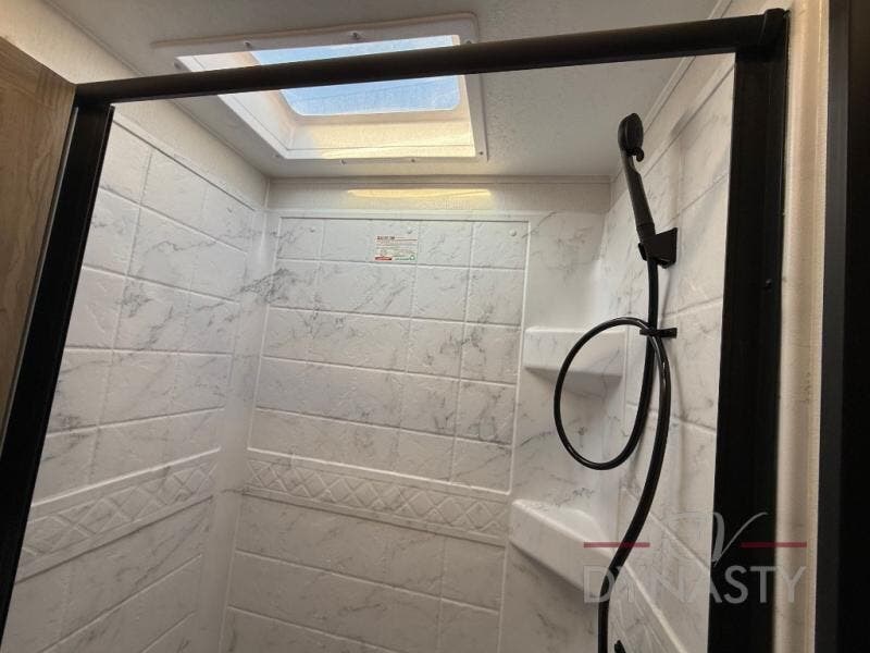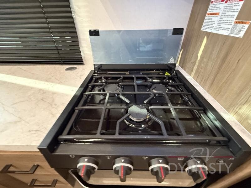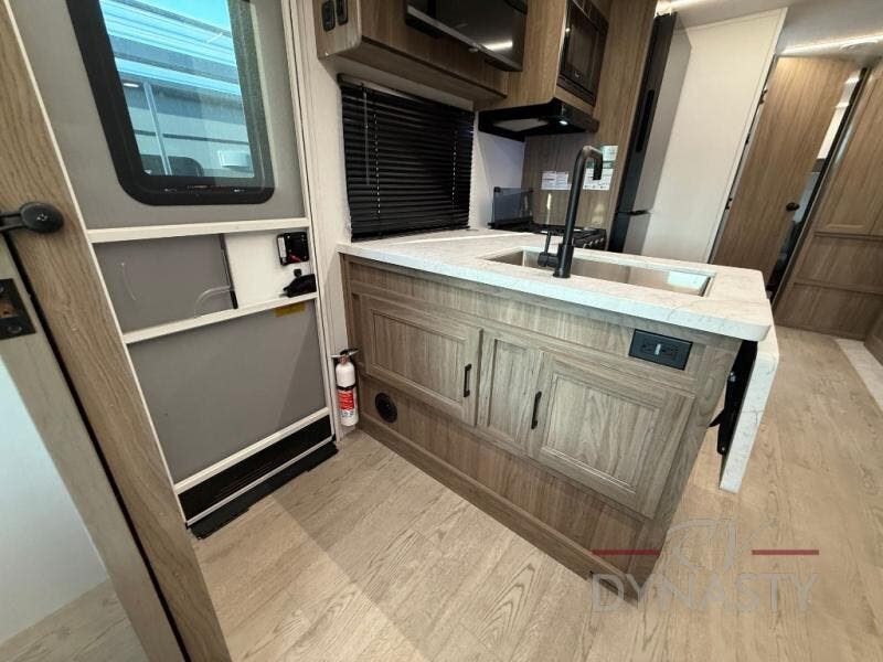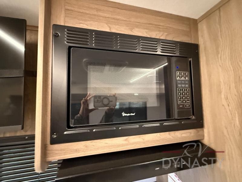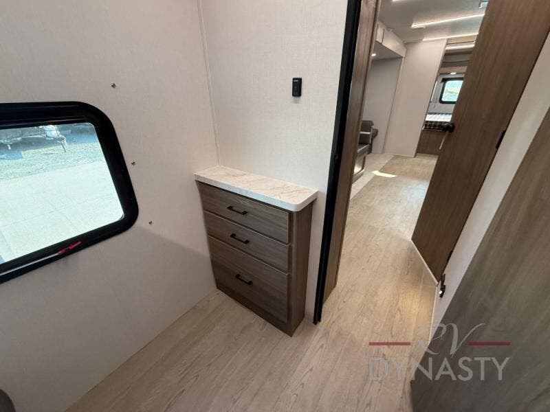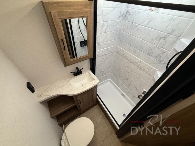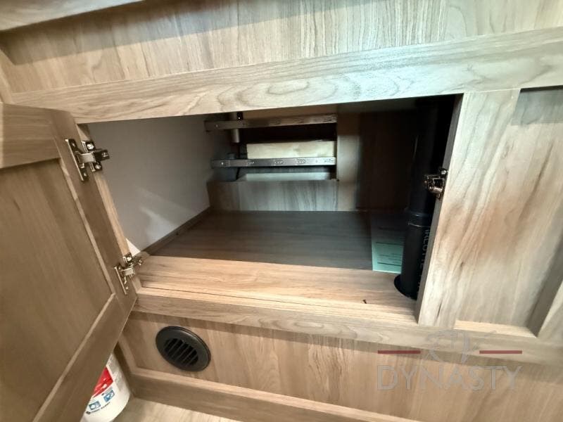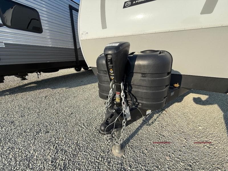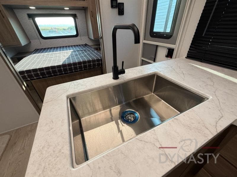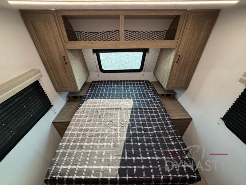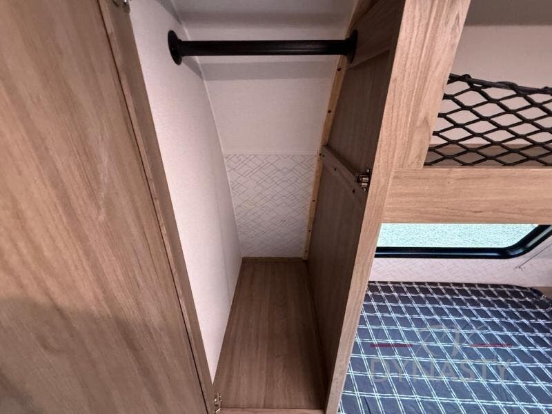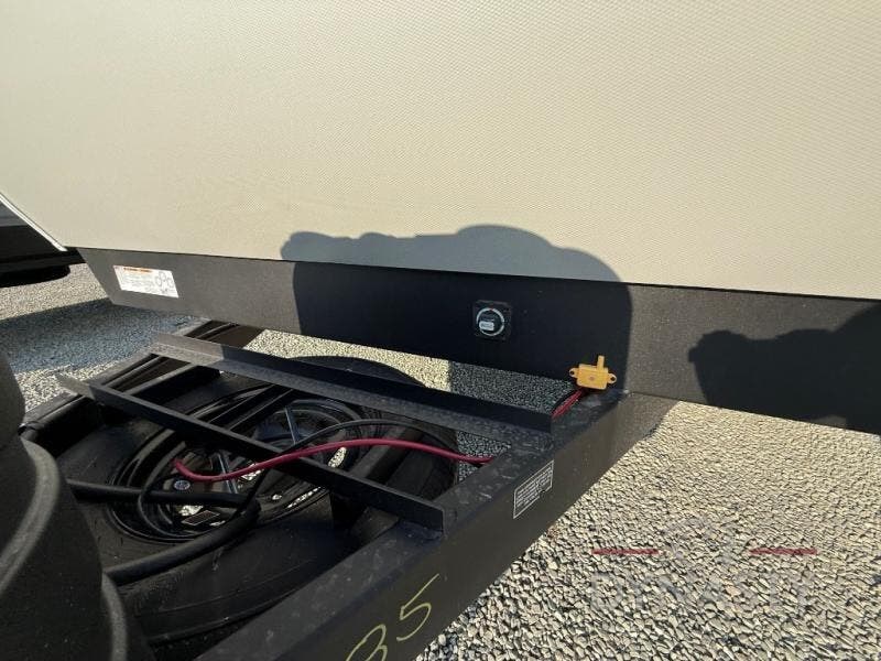 As you step into this trailer, you'll find the main bedroom at the front, featuring a spacious 60" x 80" queen bed with a wardrobe on each side for your clothes and essentials. At the center, the living area offers a large slide-out that holds a roomy U-shaped dinette perfect for meals or game nights beside it a comfortable sofa for extra seating. Opposite the slide, the L-shaped kitchen comes fully equipped with a 10-cu. ft. refrigerator, Magic Chef microwave and gas cooktop, plus a flip-up countertop for added prep space. Toward the rear, a full bathroom includes a large shower and generous counter space, and at the very back, the bunkhouse provides sleeping room for up to five, features a double bunk, bunk above sofa and trundle mat, making it easy to bring the whole crew along for the adventure.