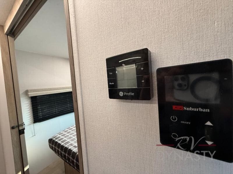 With any Freedom Express Select travel trailer by Coachmen you will find an alumicage construction and two-step vacuum bonded and pinch rolled sidewalls with Azdel interior and exterior for a trailer made to last. These Select value models come standard with a Bluetooth interior speaker, night shades, and wear-resistant vinyl flooring throughout. You will appreciate the power tongue jack, as well as the Dicor Tufflex PVC roof and heated and enclosed underbelly to help with protection and climate control. A GE 15K BTU roof A/C will keep you comfortable, and the suburban tankless water heater will provide endless hot showers!