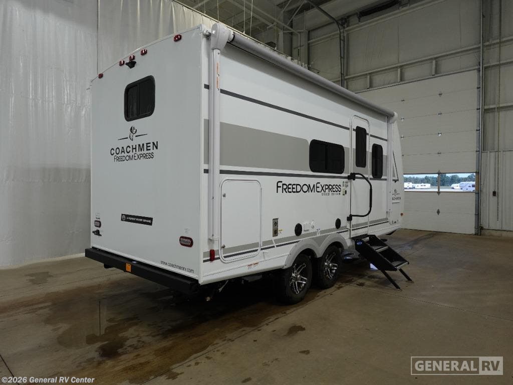Experience the perfect blend of comfort and convenience with the 2026 Coachmen Freedom Express Select 18SE. This compact yet spacious travel trailer is designed for adventurers who seek both style and functionality. Measuring just over 21 feet, it offers a cozy retreat with a modern center kitchen and living area that invites relaxation. The full-size electric refrigerator and three-burner cooktop ensure you can prepare your favorite meals with ease, while the convertible sofa provides extra sleeping space for guests. The rear bathroom is thoughtfully equipped with a shower curtain for privacy, and ample storage solutions are found throughout, including pass-through storage for all your travel essentials. Sleep soundly on the queen bed, complete with vaulted underbed storage, perfect for stowing away extra gear. Enjoy the outdoors under the 14-foot powered retractable awning, offering shade and comfort as you unwind. With a dry weight of 3,932 pounds and a cargo capacity of 2,068 pounds, this trailer is both lightweight and robust, ready to accompany you on your next adventure. Visit your nearest General RV dealership to explore this charming travel companion in person!