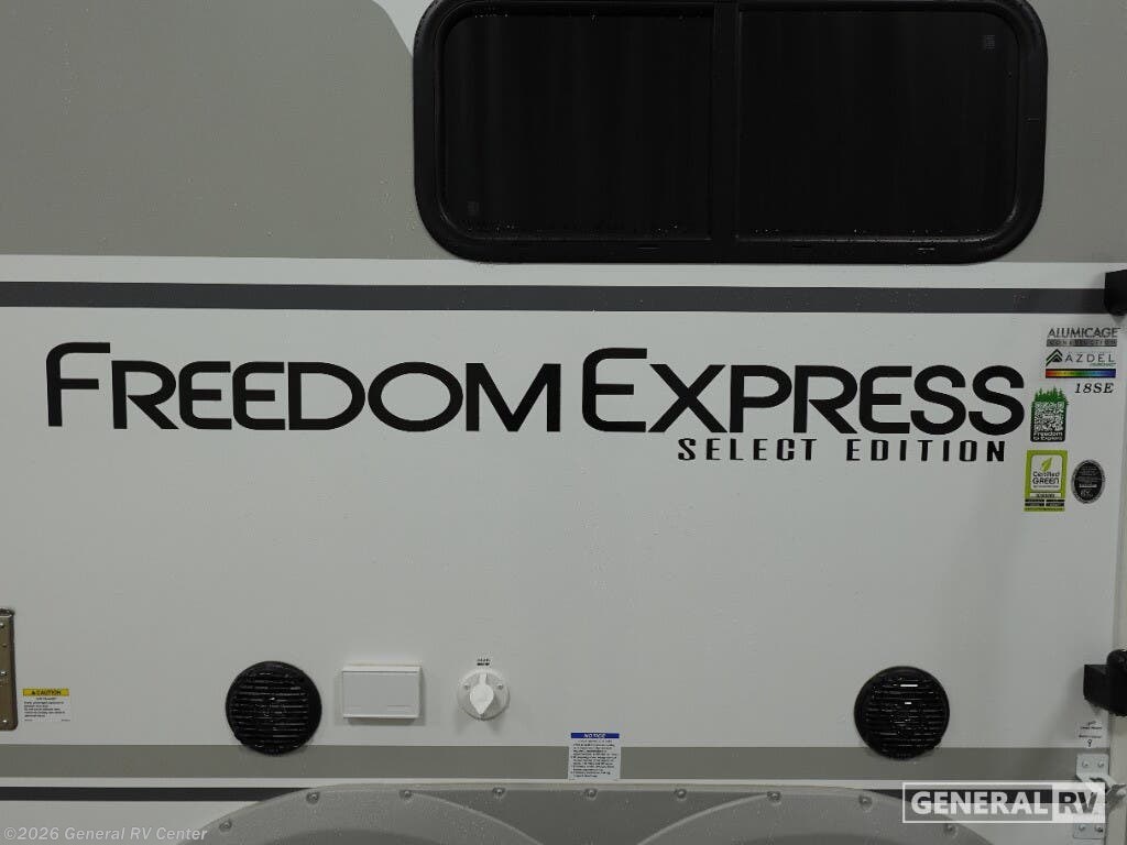 Experience the perfect blend of comfort and convenience with the 2026 Coachmen Freedom Express Select 18SE. This compact yet spacious travel trailer is designed for adventurers who seek both style and functionality. Measuring just over 21 feet, it offers a cozy retreat with a modern center kitchen and living area that invites relaxation. The full-size electric refrigerator and three-burner cooktop ensure you can prepare your favorite meals with ease, while the convertible sofa provides extra sleeping space for guests. The rear bathroom is thoughtfully equipped with a shower curtain for privacy, and ample storage solutions are found throughout, including pass-through storage for all your travel essentials. Sleep soundly on the queen bed, complete with vaulted underbed storage, perfect for stowing away extra gear. Enjoy the outdoors under the 14-foot powered retractable awning, offering shade and comfort as you unwind. With a dry weight of 3,932 pounds and a cargo capacity of 2,068 pounds, this trailer is both lightweight and robust, ready to accompany you on your next adventure. Visit your nearest General RV dealership to explore this charming travel companion in person!