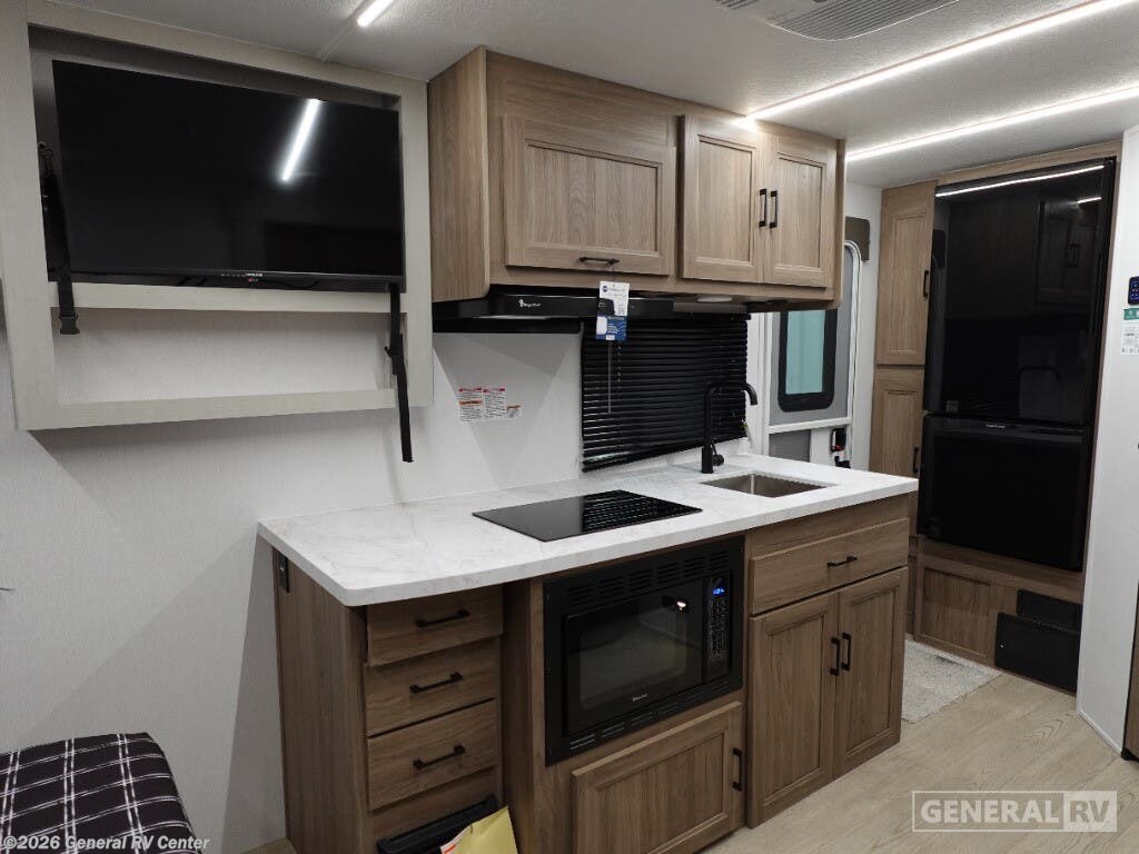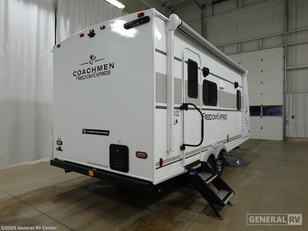 Experience the perfect blend of comfort and versatility with the 2026 Coachmen Freedom Express Select 19SE. This compact yet spacious travel trailer is designed for those who crave adventure without sacrificing the comforts of home. With a length of just over 22 feet, it's easily maneuverable while still offering ample living space. The center kitchen is equipped with a three-burner cooktop and a full-size electric refrigerator, making meal preparation a breeze. The free-standing table and sofa provide a cozy dining and relaxation area, easily converting to additional sleeping space when needed. Retreat to the inviting rear bath, complete with a practical shower and plenty of storage. The front of the trailer features a luxurious queen bed, offering under-bed storage and surrounded by wardrobes for all your essentials. Enjoy the outdoors under the 14-foot powered retractable awning, perfect for al fresco dining or simply soaking up the scenery. With a generous cargo capacity and pass-through storage, this RV is ready for any adventure you can dream up. For more information or to see this model in person, visit your nearest General RV dealership.