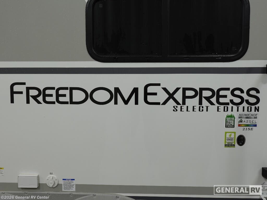 The 2026 Coachmen Freedom Express Select 21SE is your ticket to adventure, blending comfort, style, and functionality into a compact and efficient design. With a length just shy of 25 feet, this RV is perfect for both seasoned travelers and weekend warriors seeking the freedom of the open road. Despite its manageable size, it comfortably sleeps up to eight, thanks to the innovative use of space, including an upper and lower double bed that cleverly flips up for added versatility. Inside, you'll find a beautifully designed interior featuring a cozy dinette slide-out, perfect for family meals or game nights. The kitchen is equipped with essential amenities, including a 12V refrigerator and a camp kitchen for those who love to cook outdoors. The spacious bathroom with a 30” x 36” shower ensures you can freshen up after a day of exploring. With a 52-gallon fresh water capacity and ample storage, this RV is ready to support all your adventures without constant resupply stops. The single awning provides a shaded outdoor area, perfect for relaxing under the stars. Whether you're heading to the mountains or the beach, the Freedom Express Select 21SE is designed to make every journey a memorable one. For more information, visit your nearest General RV dealership and start planning your next adventure today!