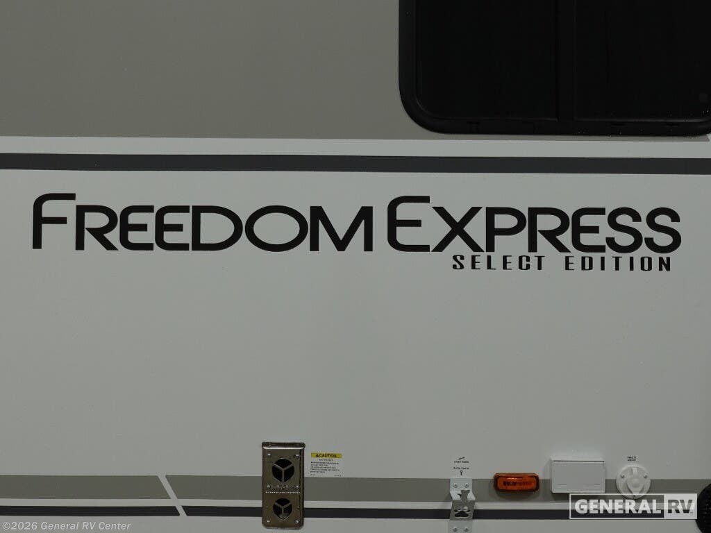 Experience the perfect blend of comfort and adventure with the 2026 Coachmen Freedom Express Select 29SE. This travel trailer is designed to accommodate up to 10 sleepers, making it ideal for family getaways or group trips. The spacious interior boasts a queen bed, convertible sleeping spaces, and a cozy bunkhouse with four bunks, ensuring everyone has a comfortable place to rest. The center kitchen is equipped with a three-burner cooktop and a full-size electric refrigerator, perfect for preparing delicious meals on the road. With a generous 50-gallon fresh water capacity, you'll have plenty of resources for your adventures. The Freedom Express Select 29SE offers a welcoming living area with a U-dinette and sofa, providing ample space for relaxation and entertainment. Enjoy the convenience of a powered retractable 16-foot awning, offering shade and comfort for outdoor gatherings. The thoughtful design includes a center bath with a shower curtain, ensuring privacy and functionality. Exterior storage options, including pass-thru and rear storage, make it easy to bring along all your gear. This travel trailer is built for those who love to explore without compromising on comfort. For more details and to see it in person, visit your nearest General RV dealership.