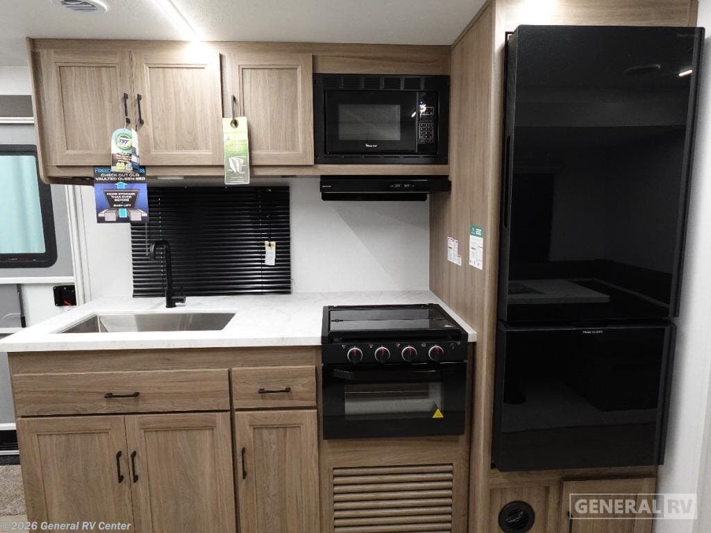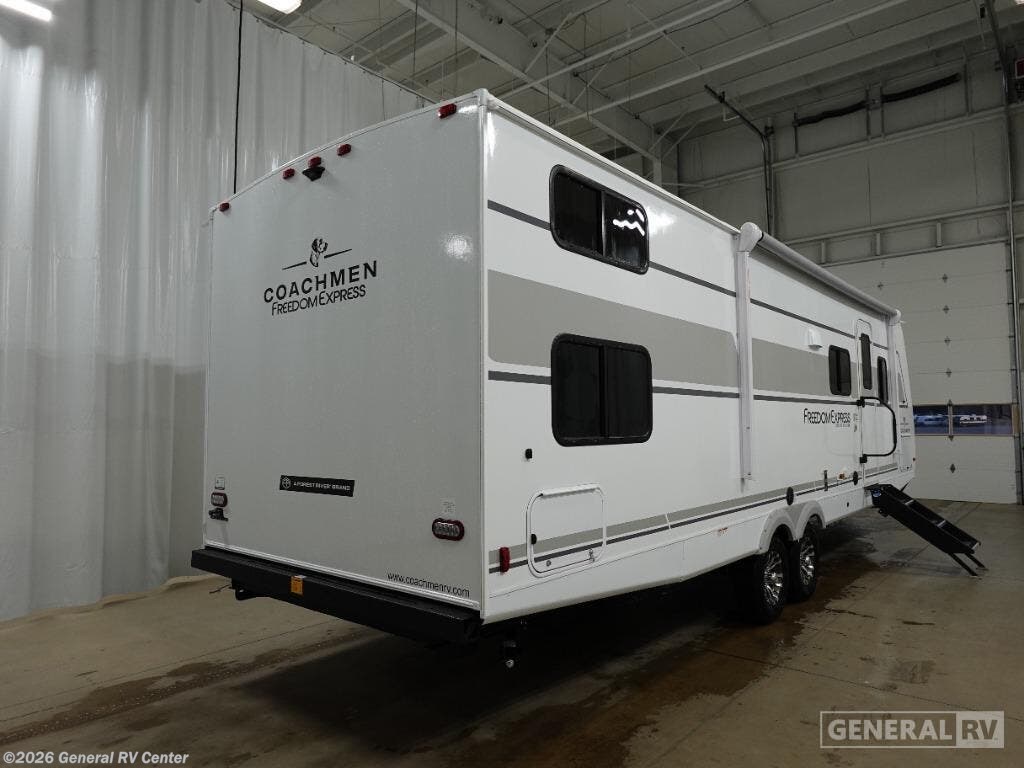 Experience the perfect blend of comfort and adventure with the 2026 Coachmen Freedom Express Select 29SE. This travel trailer is designed to accommodate up to 10 sleepers, making it ideal for family getaways or group trips. The spacious interior boasts a queen bed, convertible sleeping spaces, and a cozy bunkhouse with four bunks, ensuring everyone has a comfortable place to rest. The center kitchen is equipped with a three-burner cooktop and a full-size electric refrigerator, perfect for preparing delicious meals on the road. With a generous 50-gallon fresh water capacity, you'll have plenty of resources for your adventures. The Freedom Express Select 29SE offers a welcoming living area with a U-dinette and sofa, providing ample space for relaxation and entertainment. Enjoy the convenience of a powered retractable 16-foot awning, offering shade and comfort for outdoor gatherings. The thoughtful design includes a center bath with a shower curtain, ensuring privacy and functionality. Exterior storage options, including pass-thru and rear storage, make it easy to bring along all your gear. This travel trailer is built for those who love to explore without compromising on comfort. For more details and to see it in person, visit your nearest General RV dealership.