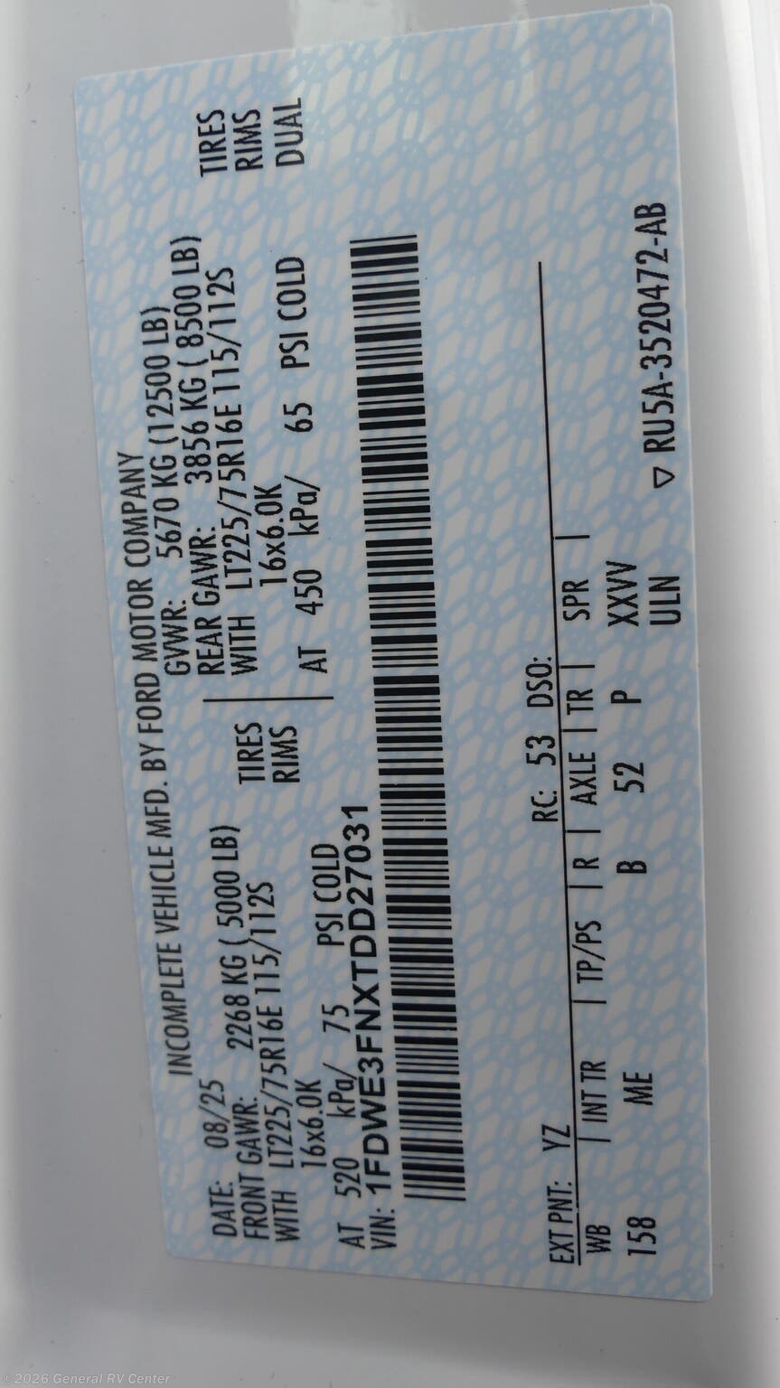 - VIN1FDWE3FNXTDD27031