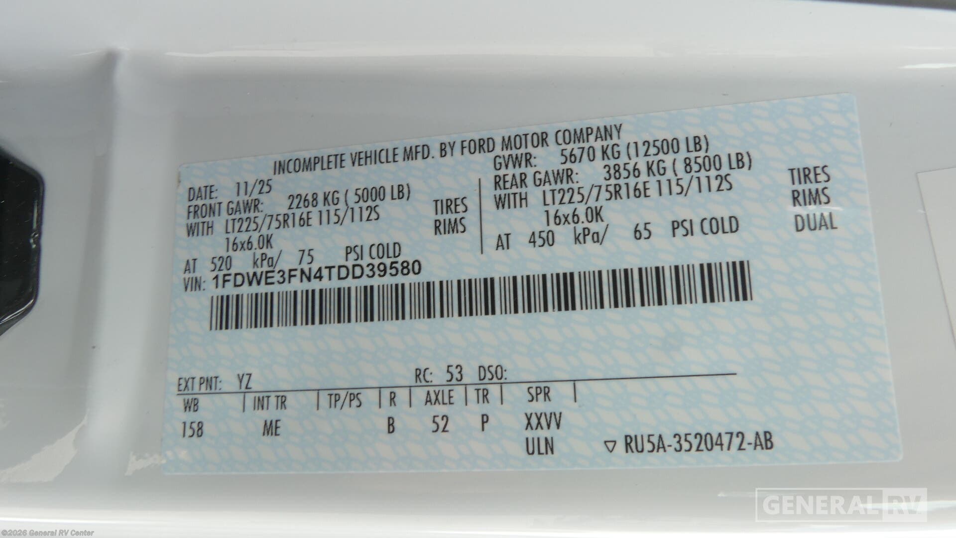 - VIN1FDWE3FN4TDD39580