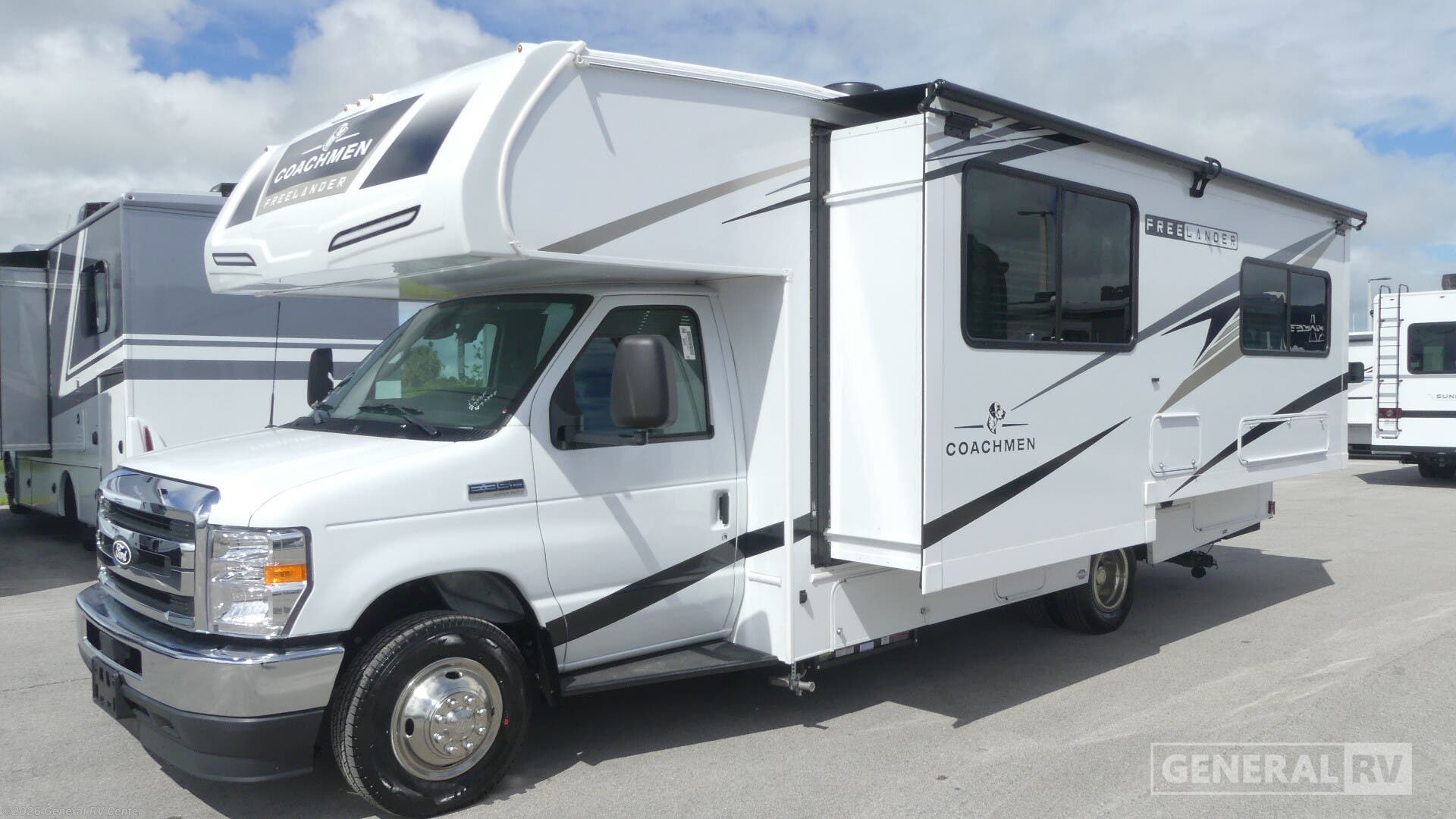 **2026 Coachmen Freelander 23FSF Highlights:** - Cab-Over Bunk for Extra Sleeping - 1 Slide-Out for Expanded Living - Fully-Equipped Kitchen with 3-Burner Cooktop & Refrigerator - Full Bathroom with Shower - 17' Power Awning for Outdoor Living Hit the road at a moment’s notice with the 2026 Coachmen Freelander 23FSF! After a day of exploring or traveling, you can relax in the spacious cab-over bunk or enjoy the open living area provided by the slide-out. The full bathroom with shower keeps you refreshed, while the fully-equipped kitchen with 3-burner cooktop, microwave, and 10.7?cu?ft refrigerator makes meal prep simple wherever your journey takes you. Designed for convenience and comfort, the Freelander 23FSF offers ample storage throughout for all your gear, clothes, and essentials. Outside, the 17' power awning creates an inviting space for dining or relaxing at your campsite, making every stop feel like a home away from home. Compact yet capable, this Class?C motorhome is perfect for couples, small families, or anyone who wants comfort and flexibility on the road.