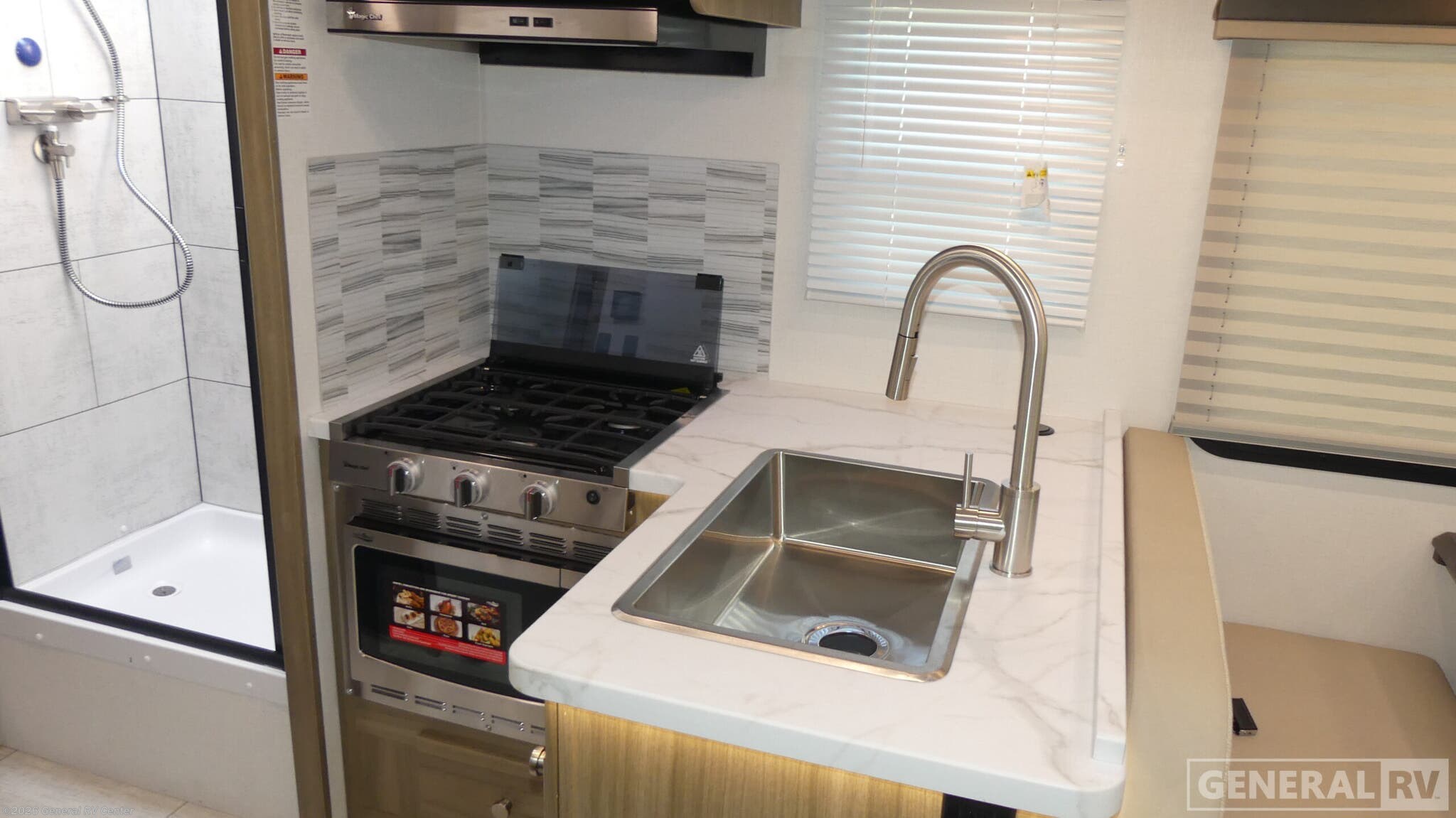 Coachmen Freelander Class C gas motorhome 27QB Ford F-350 highlights: Rear Bedroom Bunk Over Cab 42" x 71" Dinette Overhead Cabinets Sneak off for a getaway in this motorhome that has everything you might need! The private rear bedroom has a 60” x 80” queen bed with storage on either side and plenty of room to walk around. The bathroom is split with the shower on one side and the sink and toilet behind a separate door so sharing is a breeze. Relax up front on either the sofa or the roomy 42” x 71” dinette with cabinets above for all your supplies. A bunk over the cab provides yet another sleeping area that will be popular with little ones. Time to get out there in the Freelander! The Freelander Class C gas motorhome by Coachmen is a wonderful choice for anyone looking to get out on the road. A wide variety of floorplans and features offers something for everyone. The Azdel composite sidewalls and seamless one-piece roof membrane provide a solid structure to enjoy all your trips. Conveniences like storage above entrance door with an HDMI and charge station and reclining cockpit seats are standard, along with a rear color backup camera, a premium showerhead and faucet, and one-piece thermofoil countertops. The mandatory Explorer Package includes an exterior shower to rinse off before entering inside and an on-demand tankless water heater for hot water fast. Come find your favorite one today!