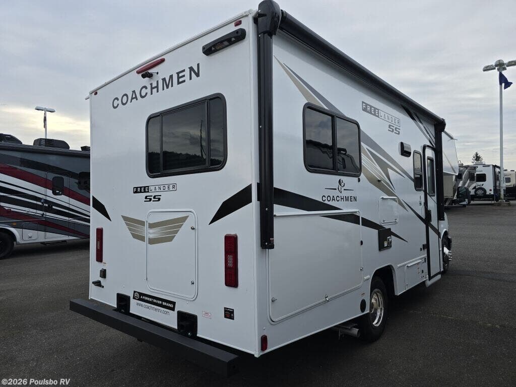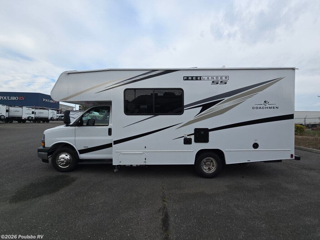 The 2026 Coachmen Freelander 21QSS presents a well-balanced motorhome designed to bring comfort and convenience to families and adventurers alike. This new gas-powered RV extends just over 24 feet, making it maneuverable for various campsites while still providing enough space to accommodate up to six people for sleeping. Without slide-outs, the interior efficiently uses its footprint to offer a welcoming living area that is perfect for relaxing after a day of travel or outdoor activities. Its layout promotes ease of movement and includes versatile sleeping arrangements to suit family needs or friends traveling together. Although this model does not feature a bunkhouse, it still maximizes sleeping capacity with practical bed options ensuring restful nights on the road. Outside, a single awning creates an inviting spot to enjoy the outdoors, shielding you from sun or light rain while extending your living space. Leveling jacks add stability and make setup at any campsite simpler, giving you more time to enjoy your trip. The Coachmen Freelander 21QSS offers a towing capacity of 5000 pounds, enabling additional hauling capabilities for extra gear or toys. This motorhome is crafted for those who want a dependable, comfortable travel trailer that puts functionality first while still feeling like a home away from home. As a family-owned, award-winning local RV dealer with multiple locations in Sumner, Everett, Kent, and Mt. Vernon Washington, Poulsbo RV here to help you find the perfect RV. Stock#: M3710, VIN: 1HA3GSC78SN012444.
