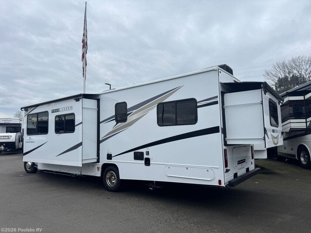 The 2026 Coachmen Freelander 30RS is a spacious and versatile RV designed for memorable adventures on the road. With an overall length of 32.11 feet and a robust GVWR of 22,000 pounds this new motorhome offers plenty of room and power for family trips or group outings. It boasts sleeping accommodations for up to 7 people making it ideal for larger families or groups seeking comfort and convenience in one package. The model features two slide outs that significantly expand the living area providing extra space to relax and socialize. An integrated awning enhances outdoor living by creating a shaded area for leisure and gatherings. Inside you will find a thoughtfully designed floorplan that facilitates a smooth flow between the living, dining, and kitchen areas maximizing usability and comfort. The RV is equipped with leveling jacks that ensure stable setup at any campsite adding to the ease of use and safety. Audio options further enhance the entertainment experience while traveling or parked. This Coachmen Freelander balances functionality with comfort and style making it a dependable choice for those who value flexibility and space. Whether you are embarking on a weekend getaway or an extended excursion this motorhome delivers a welcoming home on wheels. As a family-owned award-winning local RV dealer with multiple locations in Sumner Everett Kent and Mt Vernon Washington Poulsbo RV is here to help you find the perfect RV. Stock#: S994, VIN: 1FDXE4FN1TDD13139.