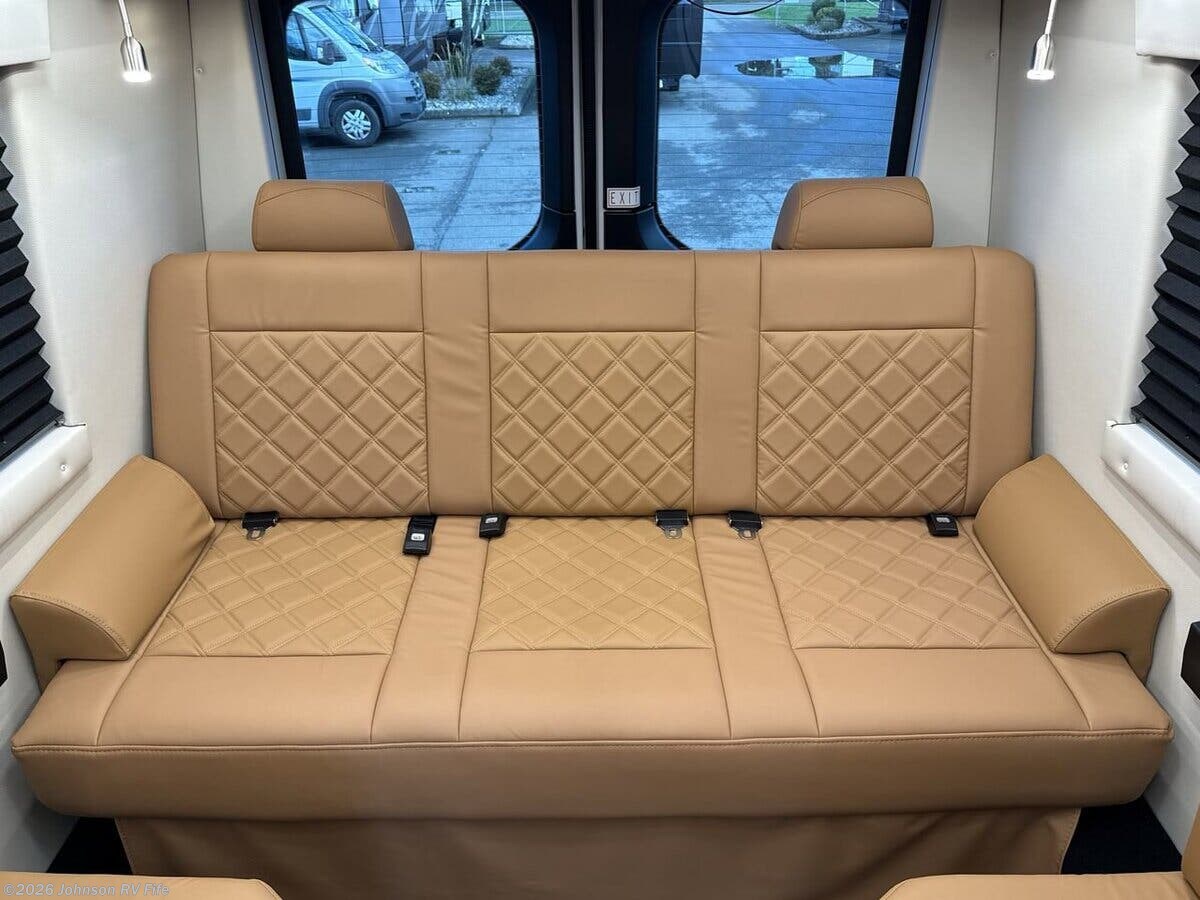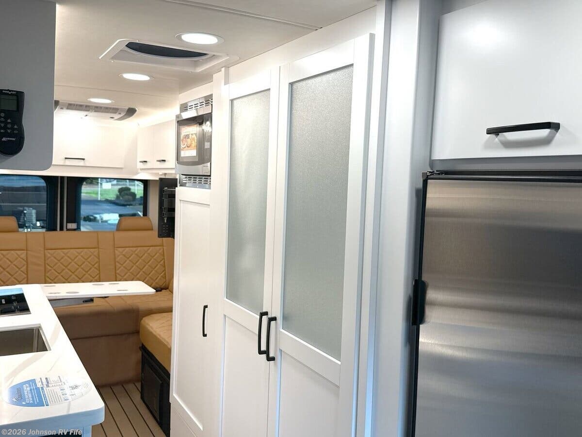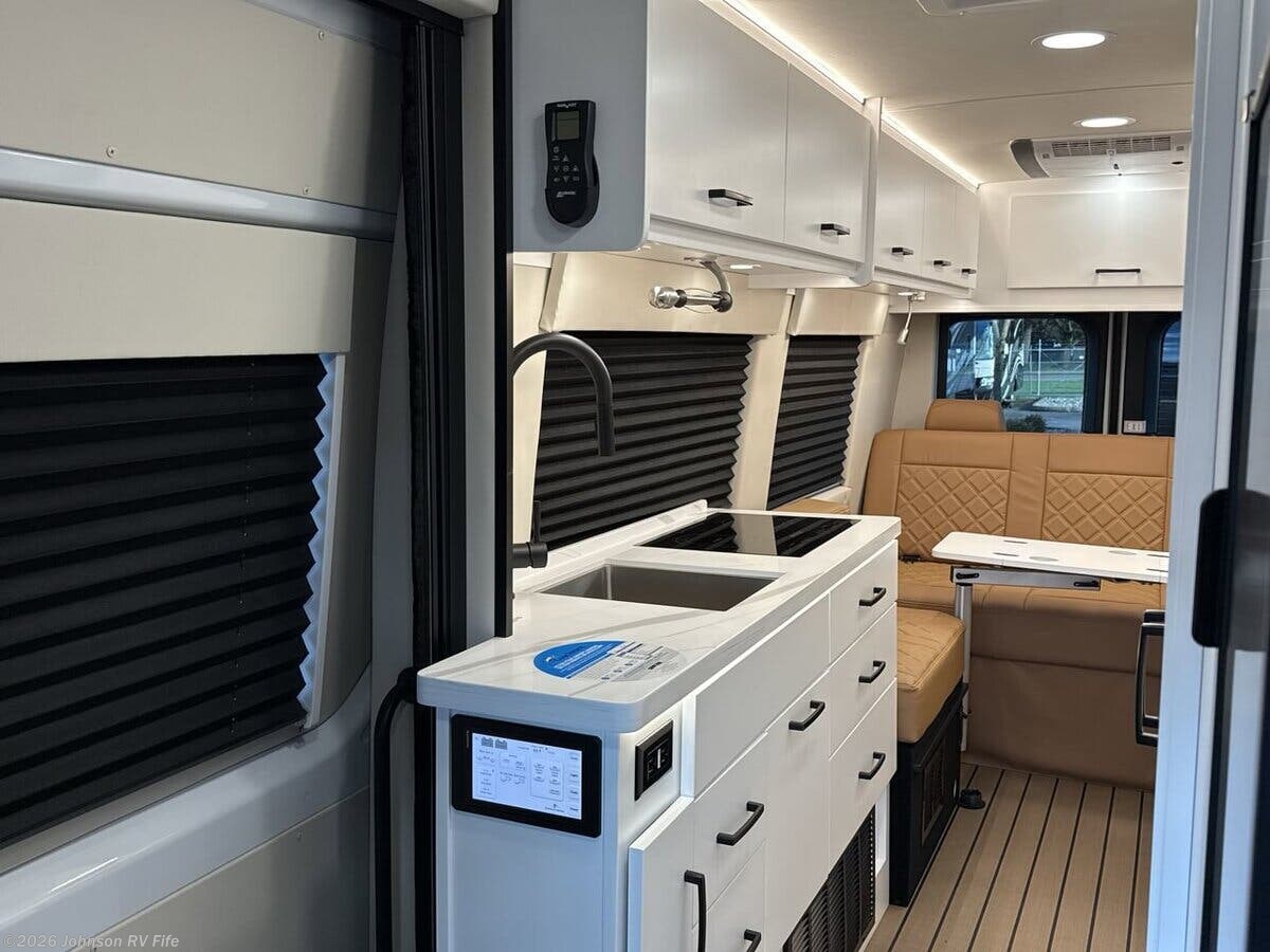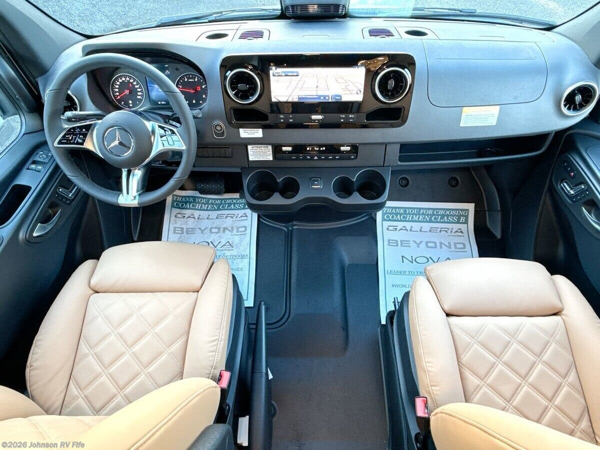 The 2026 Coachmen Galleria 24FL is a stellar choice for those seeking luxury, comfort, and high-performance in a Class B RV. Built on the reliable Mercedes-Benz 3500 EXT Chassis and powered by a robust Mercedes-Benz 2.0L Turbo I4 Diesel engine, this RV is designed for both efficiency and power. The 9-speed automatic transmission, complemented by the Electronic Stability Program, ensures smooth and safe travels, making every journey a pleasure. Exterior features include Xenon headlamps with fog lamps for enhanced visibility, and a sturdy set of black painted steel OEM wheels. The Sumo Springs Suspension (2x4) provides superior ride quality, while a 5,000-pound receiver with a 7-pin plug ensures you’re ready for towing needs. The cab features an array of modern amenities designed to enhance driving comfort and safety: - Embroidered heated front swivel seats - Heated side-view mirrors - Smart steering wheel controls - MBUX navigation and voice control - Apple CarPlay and Android Auto compatibility - Front and side airbags, backup camera, blind spot monitor, lane assist sensor, collision avoidance indicator, high-beam assist, and headlamp washers Inside, comfort and luxury are paramount. In the living area, the undercarriage lighting, PVC vinyl texture wall covering, and the MaxxAir fan with rain sensor and remote create a cozy atmosphere. The dining area is equipped with: - Custom high gloss hardwood cabinetry - Motion sensor overhead cabinet lights - Positive-catch soft-close drawers and doors - Solid surface countertops - High-rise faucet, drying rack, and sink cover - Nova Kool 7300 refrigerator and pull-out freezer drawer For entertainment and connectivity, the Galleria comes with a comprehensive set of electronics: - Garmin MultiPlex touchscreens - Rear multiplex screen with removable handheld remote - Remote Access Eclipse App - Sure Level tank sensors - King Olympus digital antenna - WiFi booster and cell booster prep - Satellite and cable TV hookups - Multiple USB charge ports and a 24-inch LED Smart TV The sleeping area is designed for maximum comfort with a power true lay-flat memory foam sofa, overhead reading lights, USB outlets, cup holders, and a dedicated C-PAP outlet. In the bathroom, the RV features an innovative Shower Miser water saver and an Oxygenics Fury shower head, ensuring a refreshing experience with efficient water usage. Mechanically, the Galleria is equipped with a 330Ah AGM battery, a 2000W Victron pure sine wave inverter, three 110W solar panels (330W total), and an Onan QG 2500 LP quiet generator with auto generator start. The 30-amp smart plug service cord supports reliable power management alongside a Truma Combi Eco Plus heat and Truma Aventa 13.5k AC dehumidifier for year-round comfort. Additional utility features include a water and utility management center, a 360 siphon black tank vent, and a black tank flush. Built for insulation and durability, the RV includes Rock and Steel based insulation, an R38 floor reflective heat barrier, and upgraded R15 insulation. The 2026 Coachmen Galleria 24FL is zero miles on the odometer, ensuring that you're starting fresh on all your adventures. This vehicle is a perfect blend of innovative technology, luxury, and practicality, tailored for the modern traveler who values efficiency and style ???.