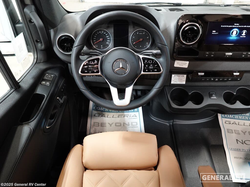 Discover the 2026 Coachmen Galleria 24FL, where luxury meets functionality in a sleek, compact design. This Class B motorhome is built on the reliable Mercedes-Benz Sprinter 3500 chassis, powered by a robust I4 diesel engine, delivering 208 horsepower and 332 lb-ft of torque. Its elegant exterior is complemented by a 13.1 ft. powered retractable awning, perfect for creating a cozy outdoor space wherever you roam. Inside, the Galleria 24FL offers a thoughtfully designed floorplan with a center kitchen and rear living area. The galley features a mid-size electric refrigerator and a single cooktop burner, ideal for preparing your favorite meals on the road. The rear living area boasts a convertible sofa, providing comfortable sleeping arrangements for two. The wet bath with a shower curtain ensures you have all the essentials for a refreshing experience. With ample storage, including overhead compartments and wardrobe space, this RV is ready to accommodate all your travel needs. Ready to explore the open road in style and comfort? Visit your nearest General RV dealership to learn more about the Coachmen Galleria 24FL.