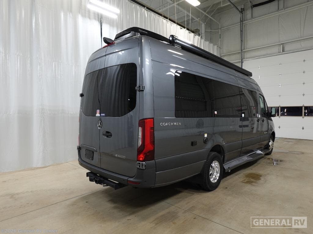 Experience the perfect blend of luxury and functionality with the 2025 Coachmen Galleria 24FL. Built on the reliable Mercedes-Benz Sprinter 3500 chassis, this Class B RV is designed for those who crave adventure without sacrificing comfort. With its sleek exterior and a powerful Mercedes-Benz I4 engine, this model promises both style and performance. The 24FL offers a cozy retreat with a convertible bed, ideal for two travelers seeking a comfortable night's rest after a day of exploration. Inside, you'll find a thoughtfully designed floorplan featuring a center kitchen and a rear living area, perfect for relaxation. The galley is equipped with a single cooktop burner and a mid-size electric refrigerator, ensuring you have all the essentials for meal preparation. The wet bath with a curtain offers convenience, while the powered retractable awning provides shade for outdoor enjoyment. With its impressive tow capacity of 7,500 pounds and a diesel fuel capacity of 24.5 gallons, the Galleria 24FL is ready for your next journey, offering both efficiency and adventure at every turn. For more details and to see this model in person, visit your nearest General RV dealership.