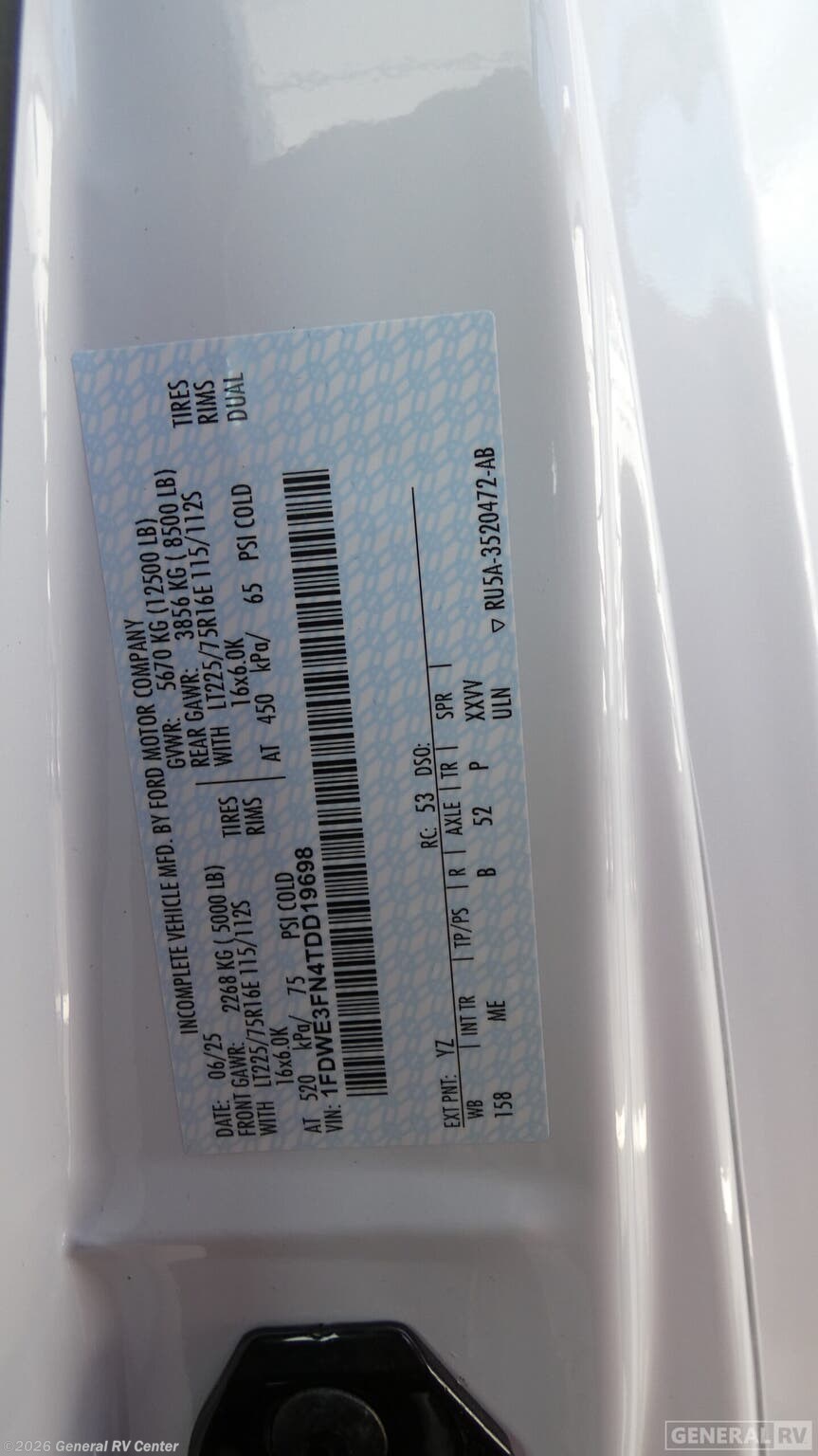 - VIN1FDWE3FN4TDD19698